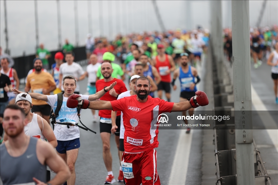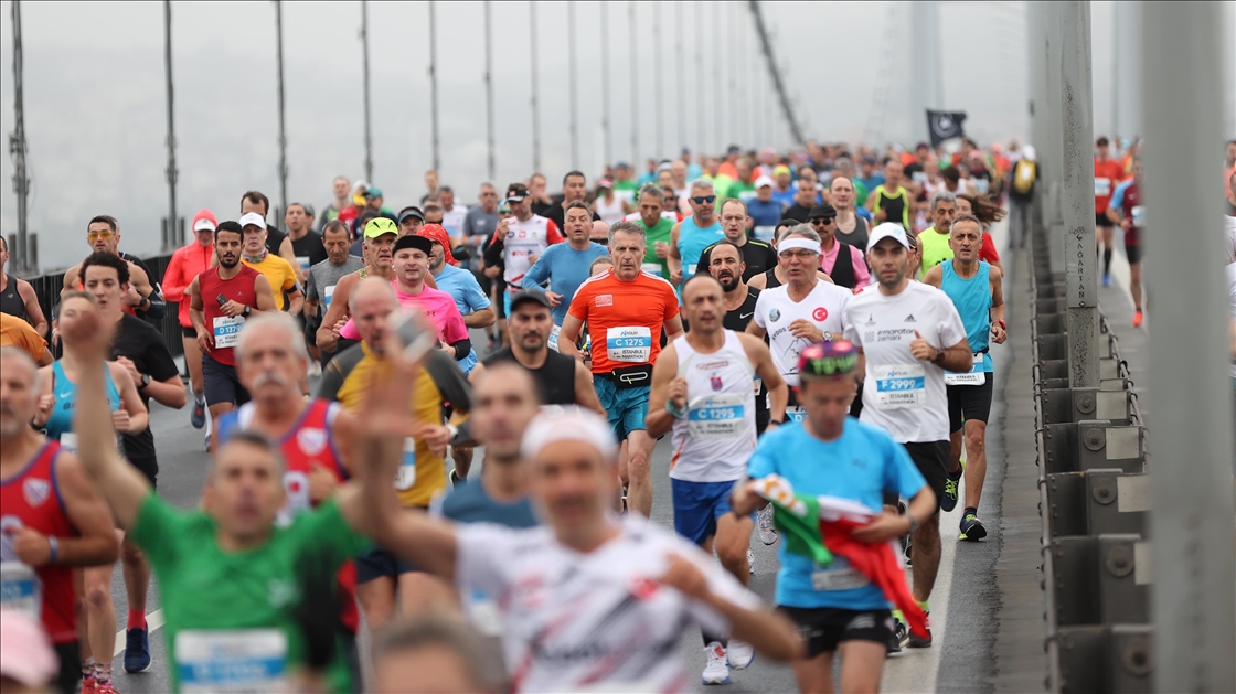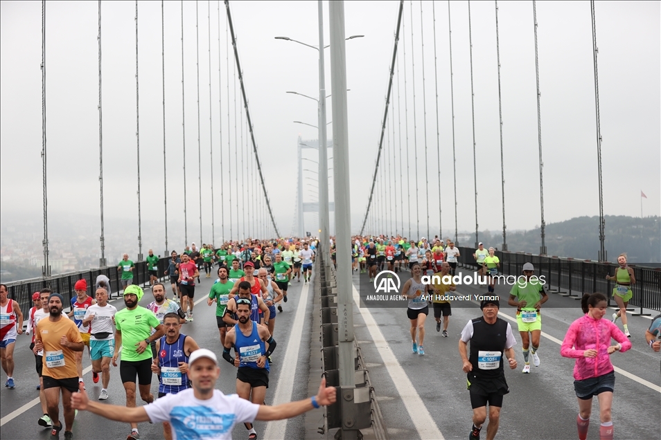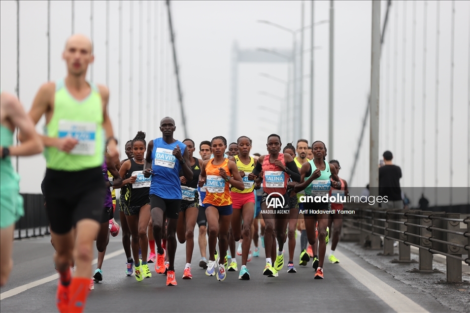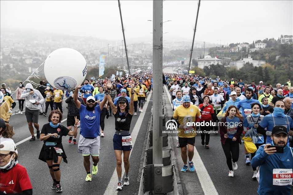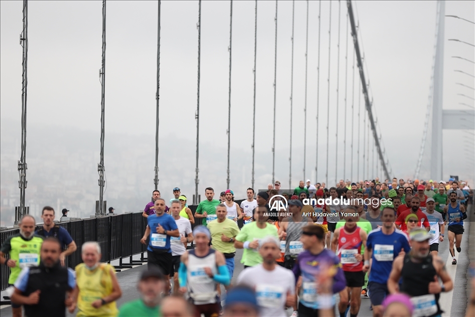 ISTANBUL, TURKEY - NOVEMBER 07: Athletes crossing the July 15 Martyrs Bridge as they take part in the Istanbul Marathon on November 07, 2021 in Istanbul, Turkey. ( Arif Hüdaverdi Yaman - Anadolu Agency )Arif Hüdaverdi Yaman