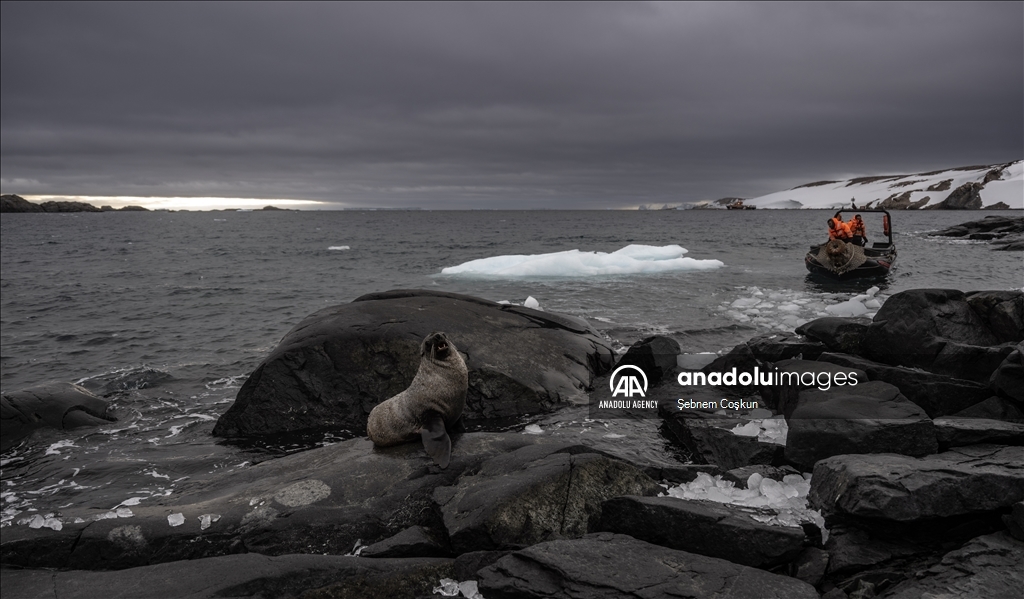 ANTARCTICA - MARCH 05: Juan Fernandez fur seals are seen as scientists from Turkiye carry out their work during the 9th National Antarctic Science Expedition, in Antarctica on March 05, 2025. The team participating in the 9th National Antarctic Science Expedition, organized under the auspices of the Turkish Presidency, Ministry of Industry and Technology and with the coordination of TUBITAK MAM Polar Research Institute, returned home after their 34-day journey. During the expedition, observations of glaciers, icebergs and humpback whales living at the South Pole, various seal and bird species, as well as penguins, the continent's symbolic creatures, were also made. ( Şebnem Coşkun - Anadolu Agency )Şebnem Coşkun