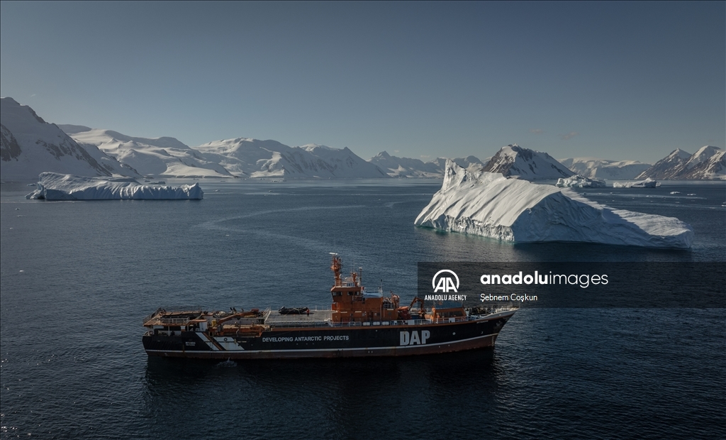 ANTARCTICA - MARCH 04: Scientists from Turkiye carry out their work during the 9th National Antarctic Science Expedition, in Antarctica on March 04, 2025. The team participating in the 9th National Antarctic Science Expedition, organized under the auspices of the Turkish Presidency, Ministry of Industry and Technology and with the coordination of TUBITAK MAM Polar Research Institute, returned home after their 34-day journey. During the expedition, observations of glaciers, icebergs and humpback whales living at the South Pole, various seal and bird species, as well as penguins, the continent's symbolic creatures, were also made. ( Şebnem Coşkun - Anadolu Agency )Şebnem Coşkun