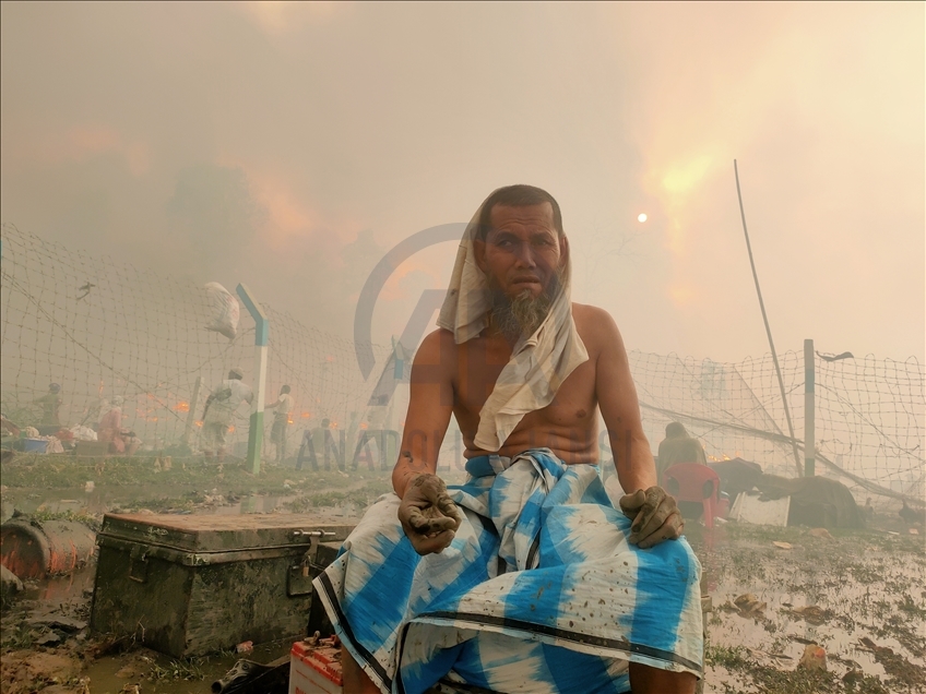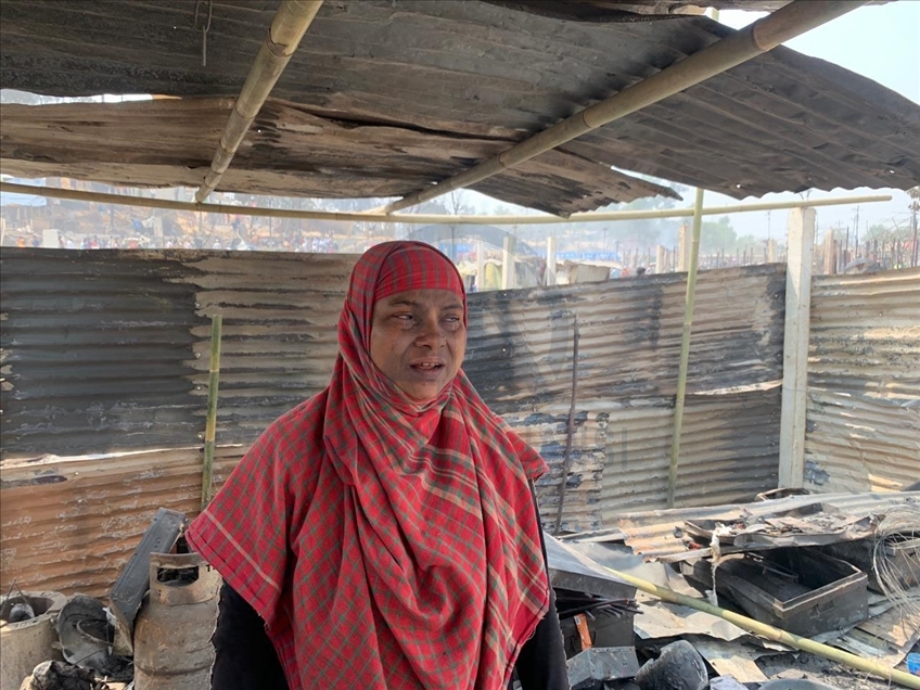 COX'S BAZAAR, BANGLADESH - MARCH 22: A person is seen after a huge fire broken out in the Balukhali Rohingya camp in Cox’s Bazar, Bangladesh on March 22, 2021. A huge fire swept through Rohingya refugee camps in southern Bangladesh, destroying thousands of homes as people scrambled to recover their possessions amid burning shanties and tents. ( Stringer - Anadolu Agency )Stringer