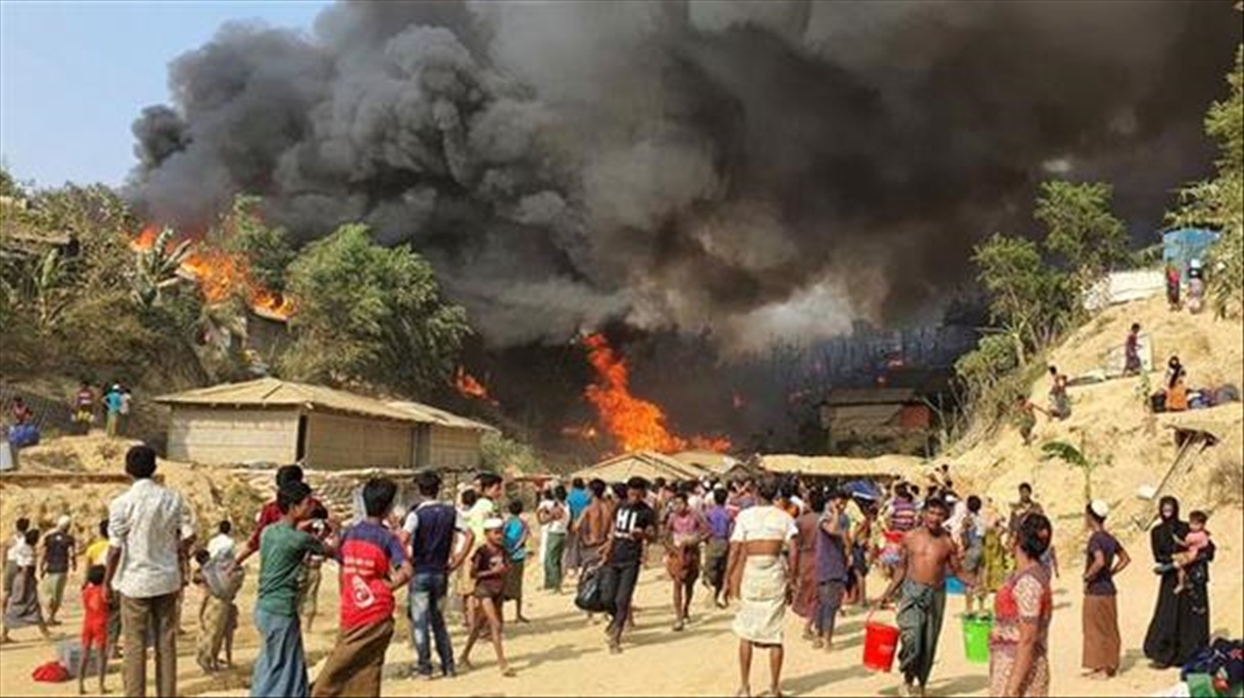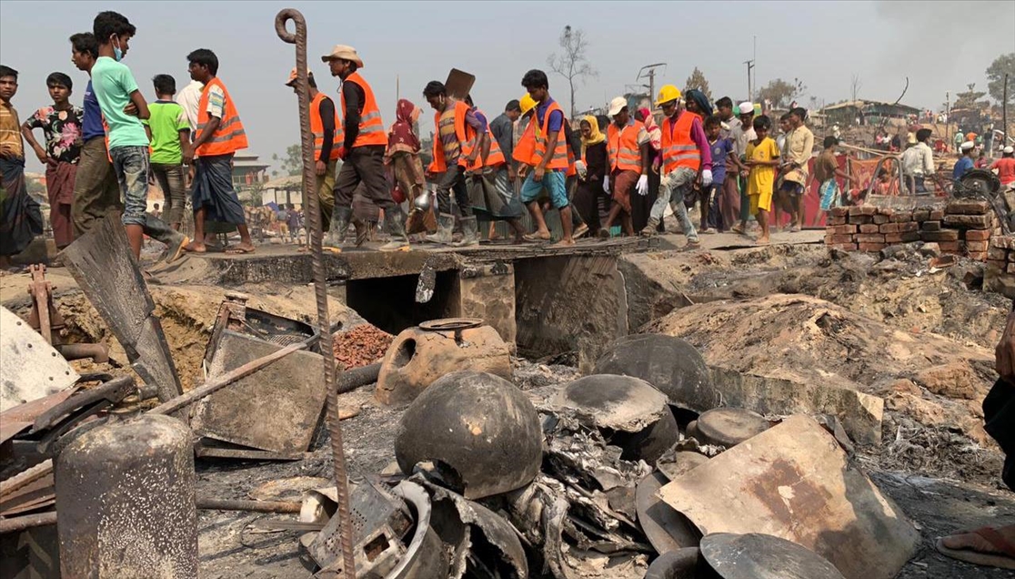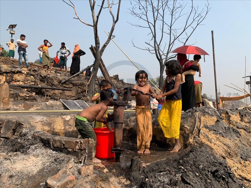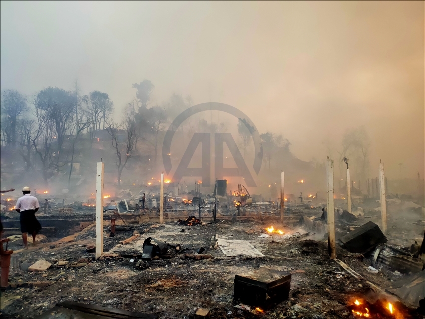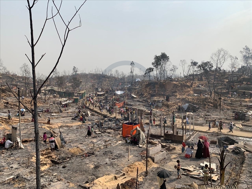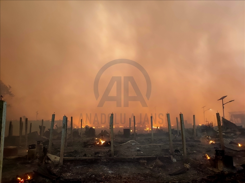 COX'S BAZAAR, BANGLADESH - MARCH 22: A view from the Balukhali Rohingya camp after a huge fire broken out in Cox’s Bazar, Bangladesh on March 22, 2021. A huge fire swept through Rohingya refugee camps in southern Bangladesh, destroying thousands of homes as people scrambled to recover their possessions amid burning shanties and tents. ( Stringer - Anadolu Agency )Stringer