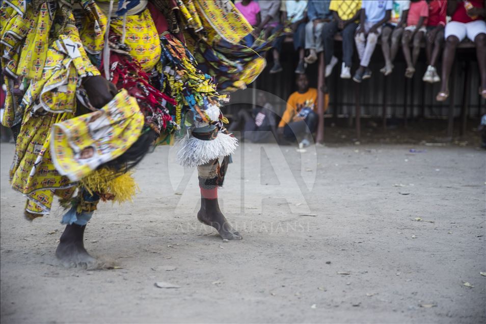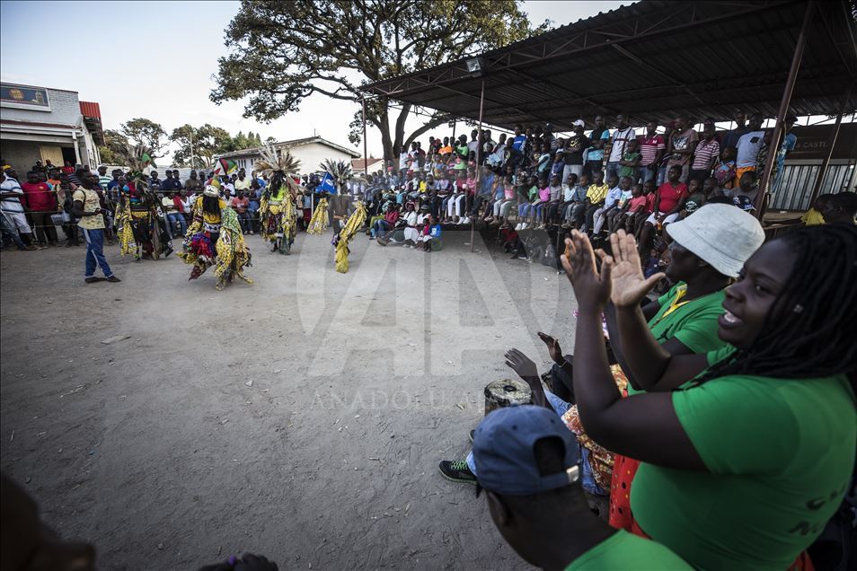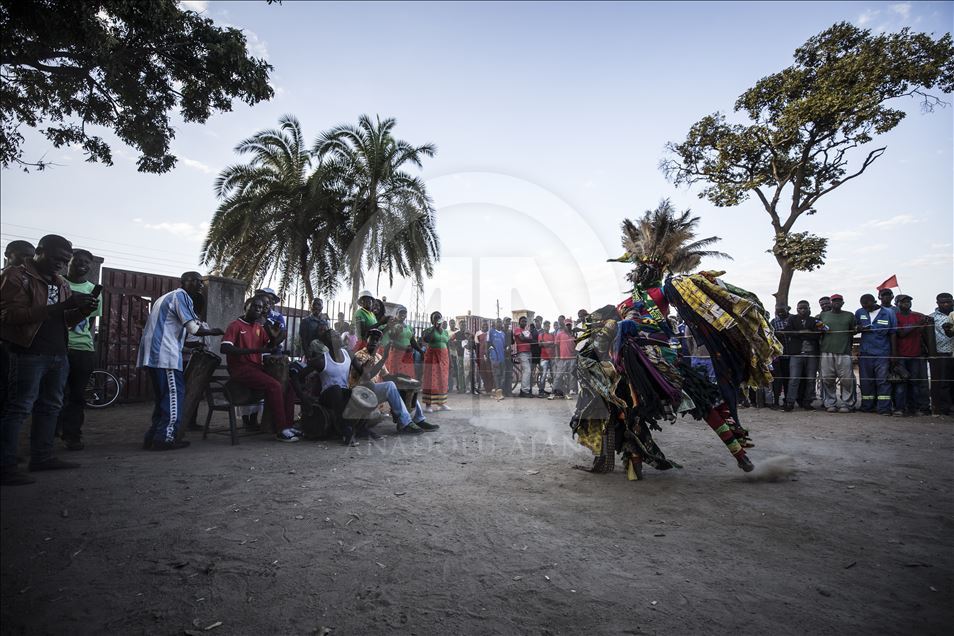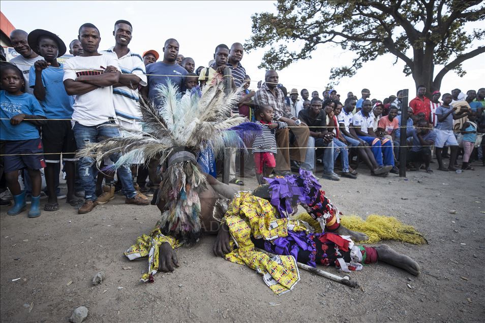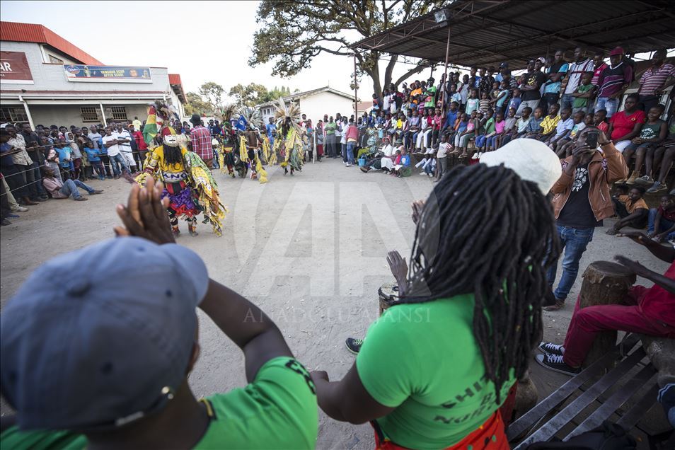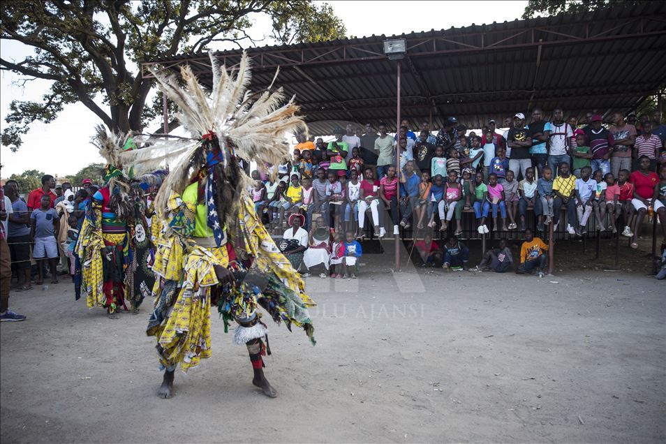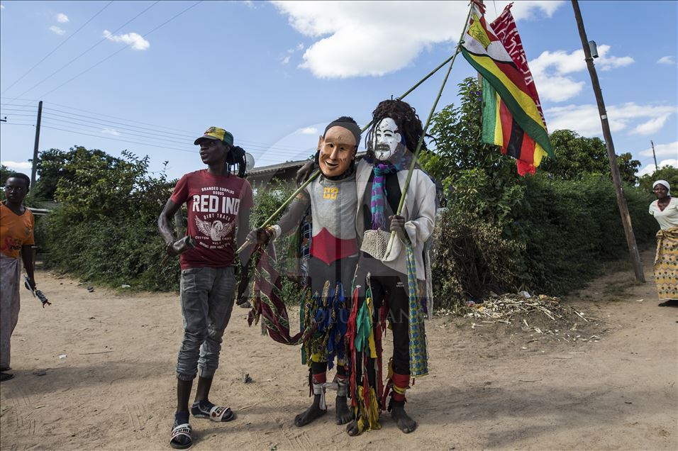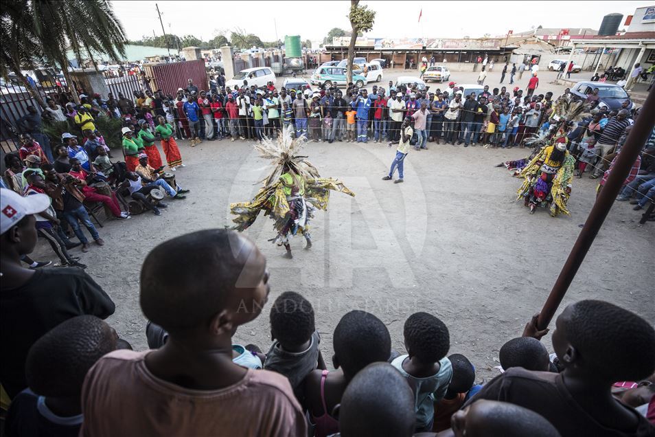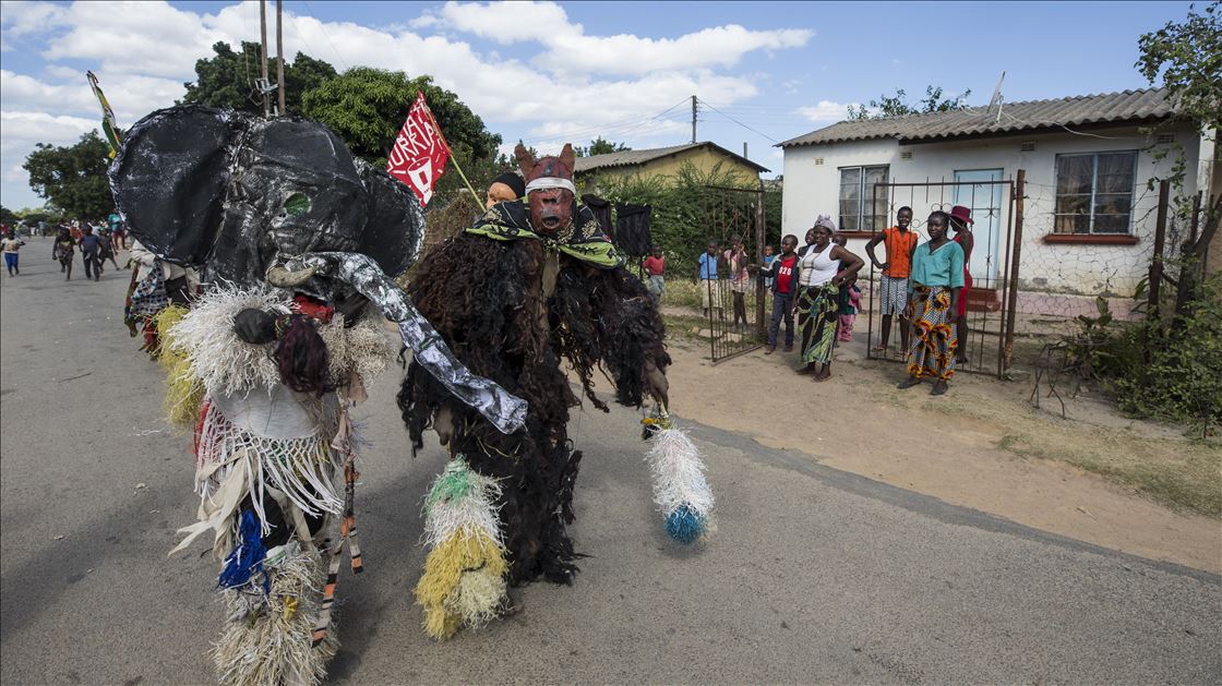 Members of Gure team, consisting of boys called as Cegure with ages ranging from 15 to 20, are seen with their masks and costumes in Harare, Zimbabwe on May 14, 2019. Gure culture of southern and central African countries continues also in Zimbabwe.