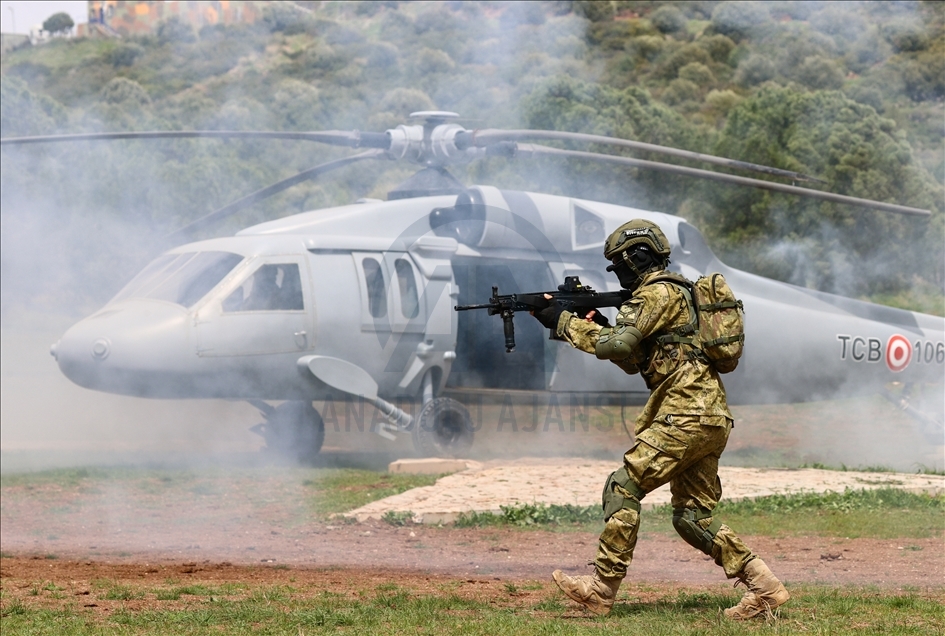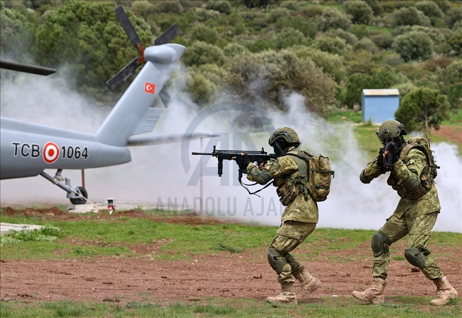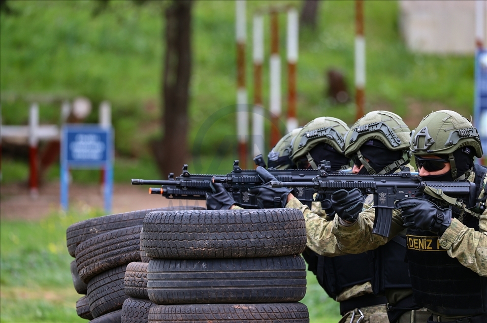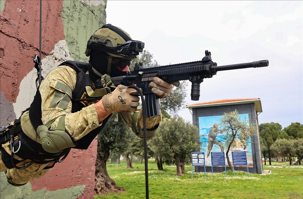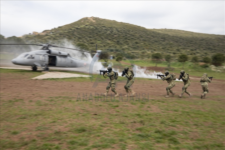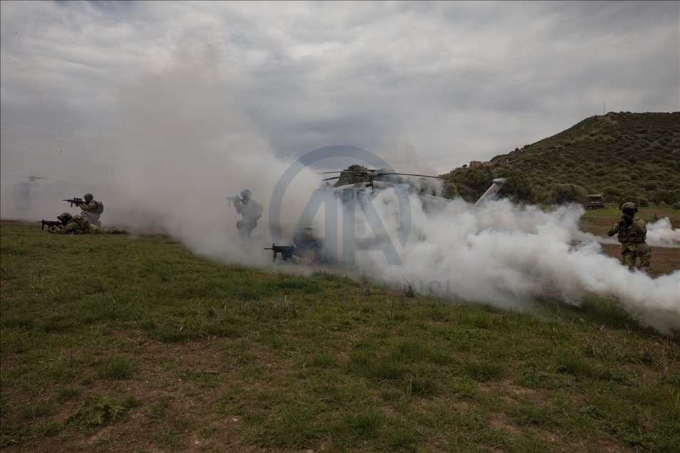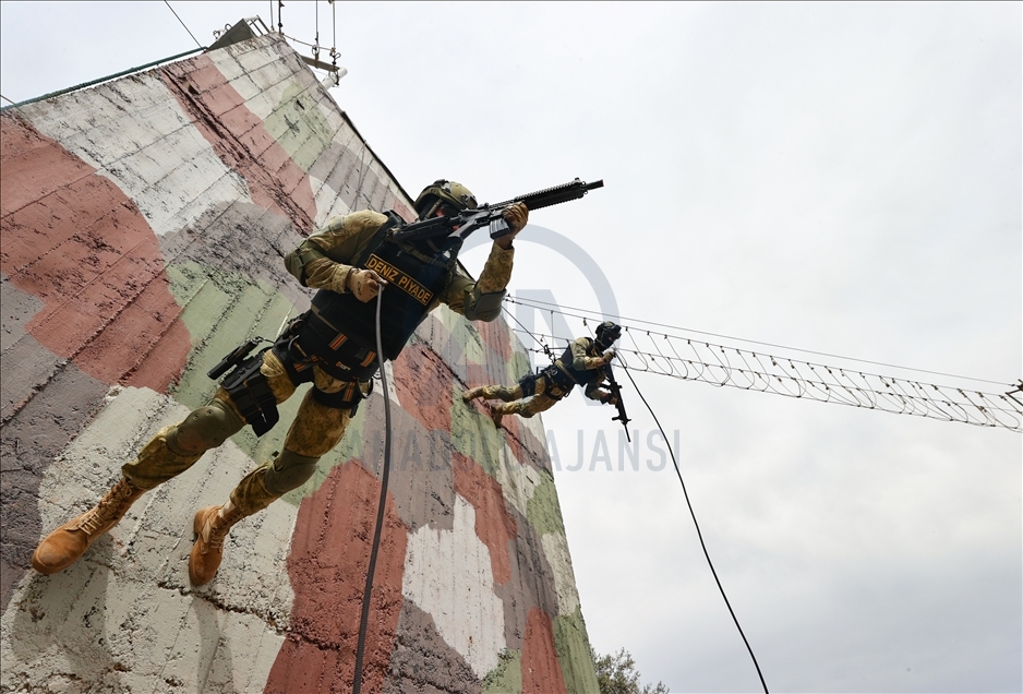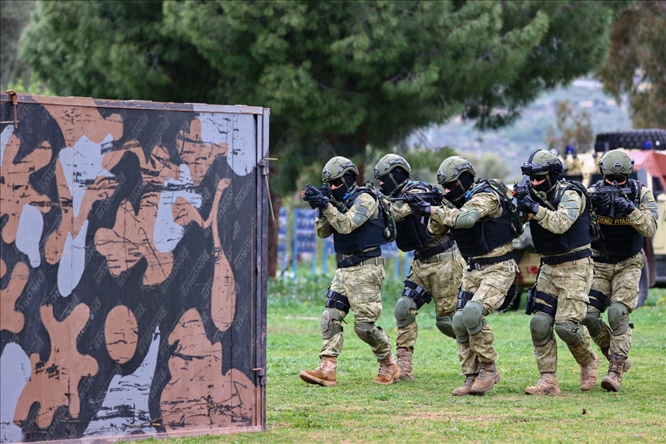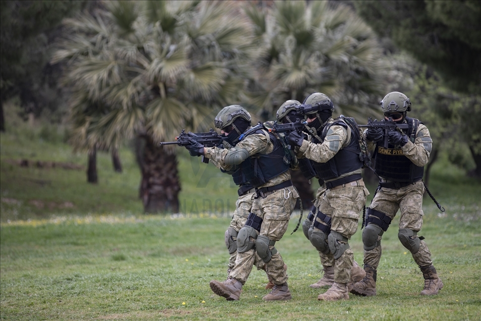 Members of Amphibious Marine Brigade of Turkish Armed Forces attend a training at Amphibious Marine Brigade in Foca district of Izmir, Turkey
