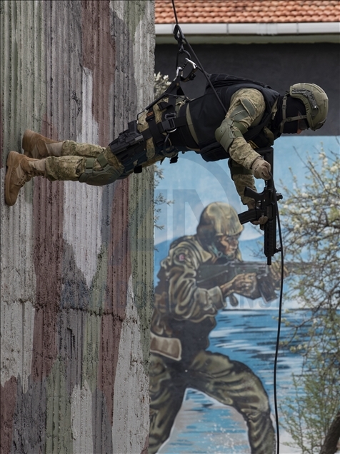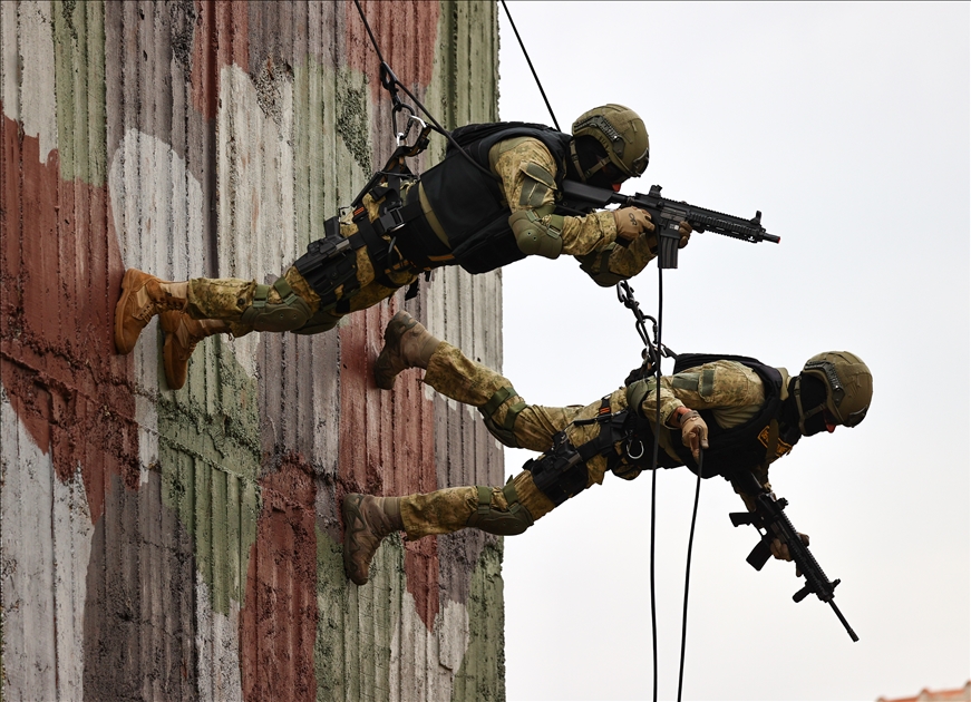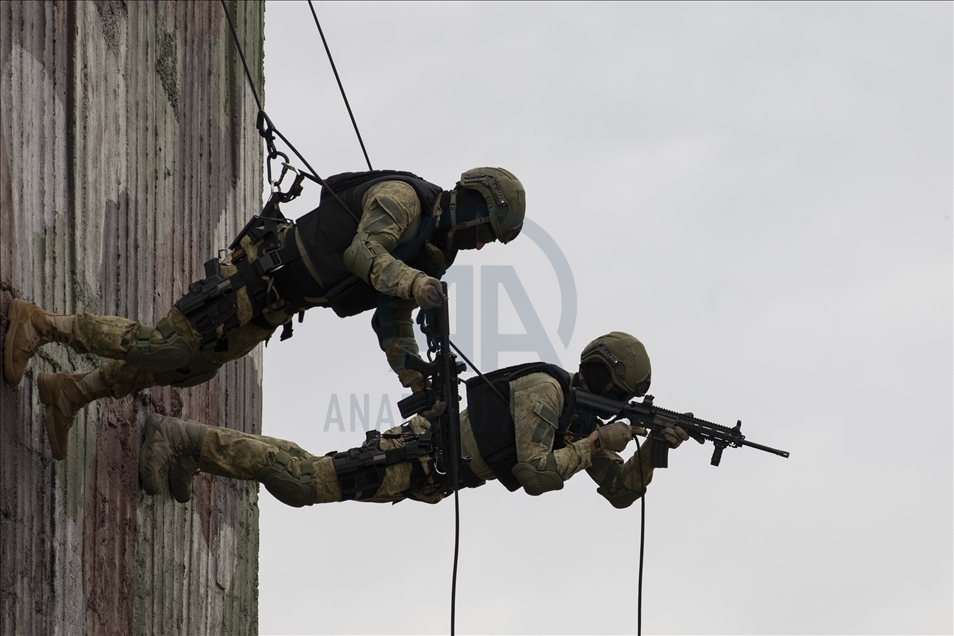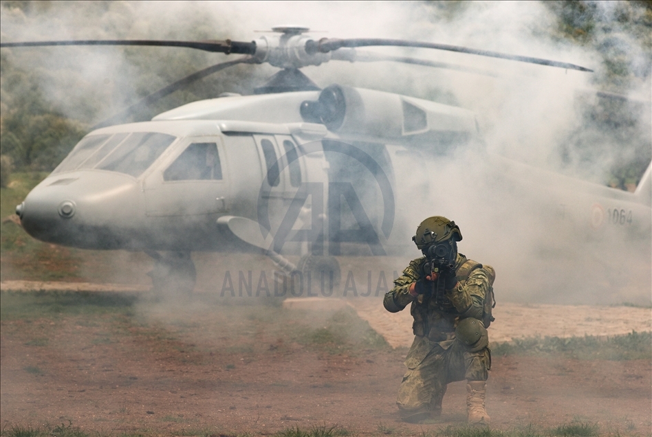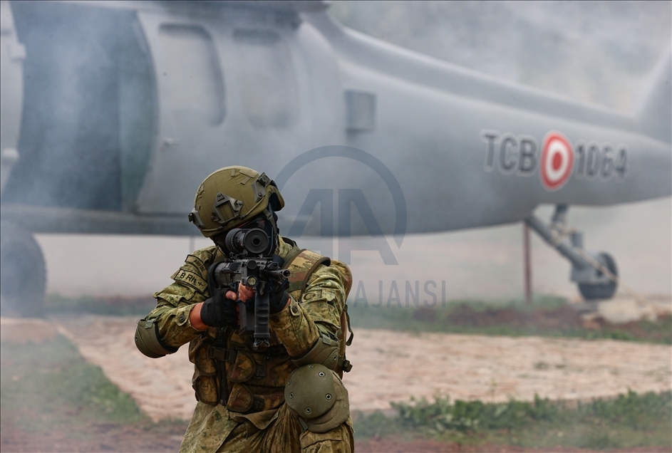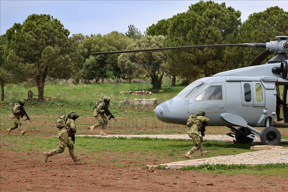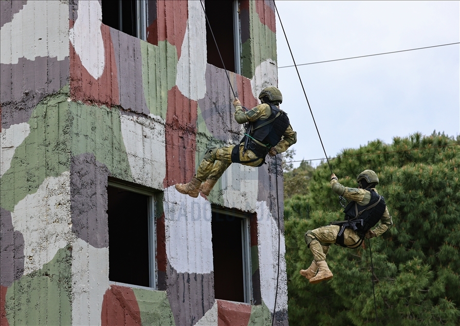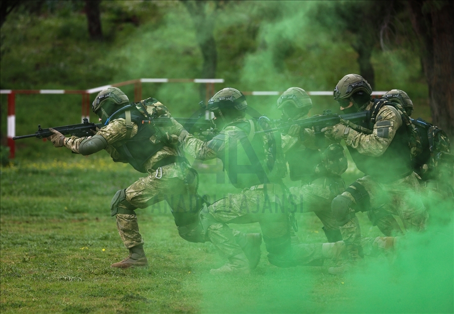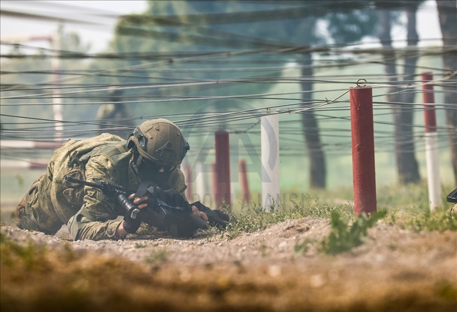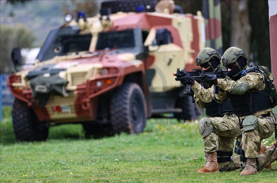Members of Amphibious Marine Brigade of Turkish Armed Forces attend a training at Amphibious Marine Brigade in Foca district of Izmir, Turkey