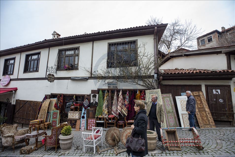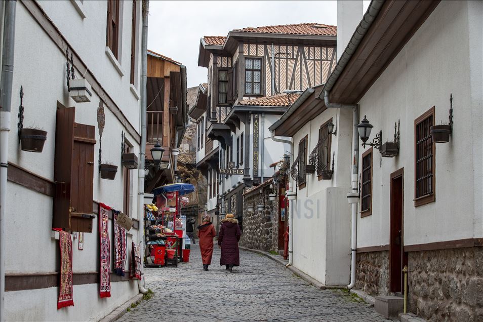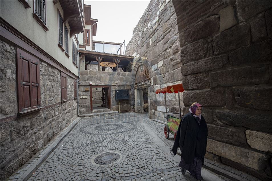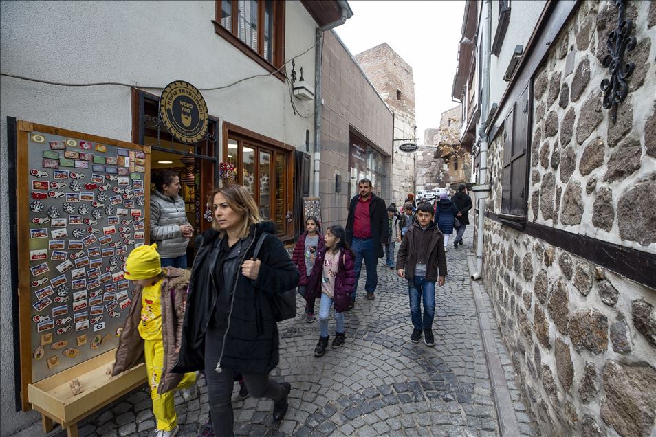 ANKARA, TURKEY - FEBRUARY 27: Visitors take a tour around the shops at the Ankara Castle, in Ankara, Turkey on February 27, 2020. Ankara Castle, one of the symbols of city which is not exactly known when it was built. It was established during the settlement of the Galatians, and was repaired during the Roman period. The area surrounded by walls that are used for both defense and settlement. The neighbourhood culture is still preserved between settlers. Visitors have a chance to experience the historical journey as they visit the historical streets and shops selling nostalgic items. ( Aytaç Ünal - Anadolu Agency )Aytaç Ünal