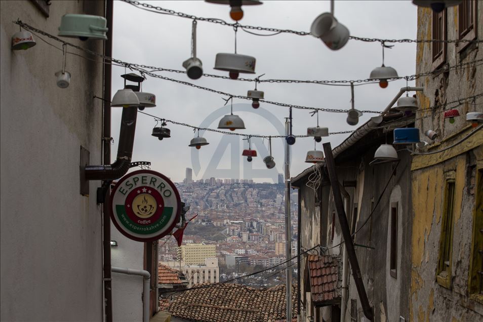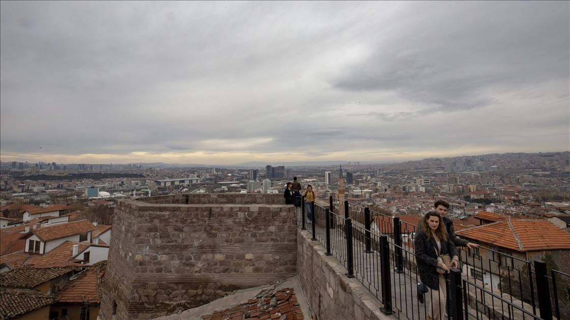 ANKARA, TURKEY - FEBRUARY 27: A view from the Ankara Castle, in Ankara, Turkey on February 27, 2020. Ankara Castle, one of the symbols of city which is not exactly known when it was built. It was established during the settlement of the Galatians, and was repaired during the Roman period. The area surrounded by walls that are used for both defense and settlement. The neighbourhood culture is still preserved between settlers. Visitors have a chance to experience the historical journey as they visit the historical streets and shops selling nostalgic items. ( Aytaç Ünal - Anadolu Agency )Aytaç Ünal