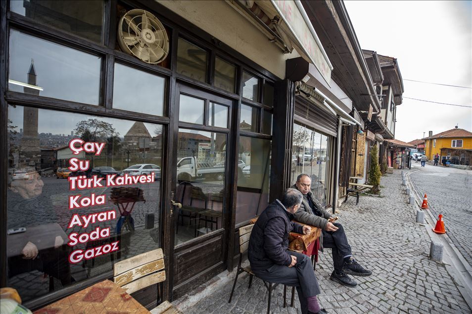 ANKARA, TURKEY - FEBRUARY 27: Visitors are seen in a coffee shop at the Ankara Castle, in Ankara, Turkey on February 27, 2020. Ankara Castle, one of the symbols of city which is not exactly known when it was built. It was established during the settlement of the Galatians, and was repaired during the Roman period. The area surrounded by walls that are used for both defense and settlement. The neighbourhood culture is still preserved between settlers. Visitors have a chance to experience the historical journey as they visit the historical streets and shops selling nostalgic items. ( Aytaç Ünal - Anadolu Agency )Aytaç Ünal