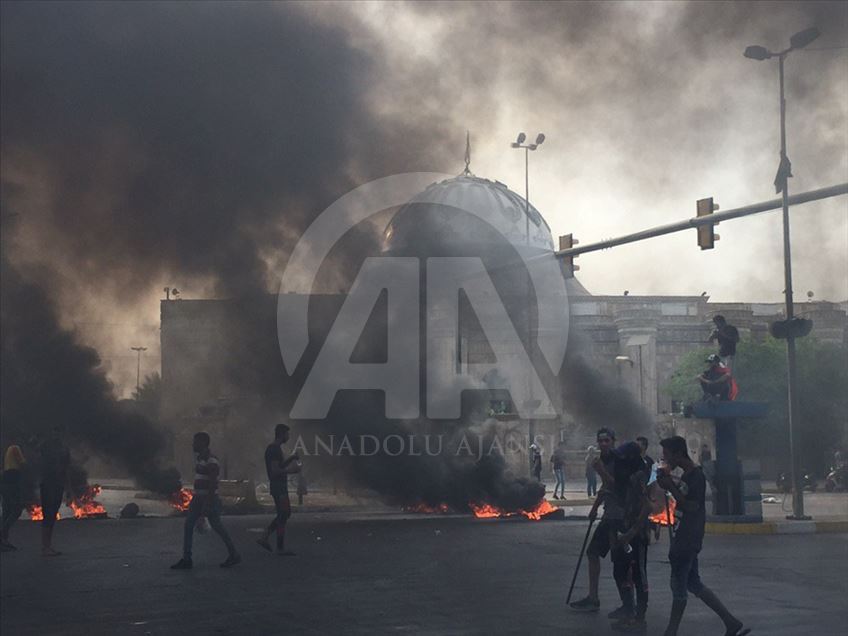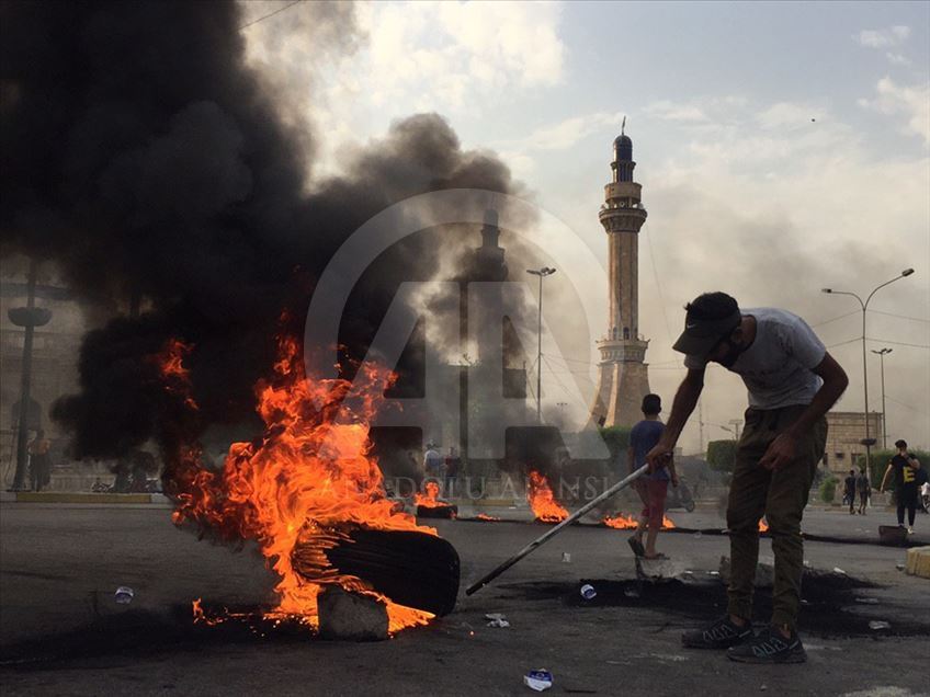 BAGHDAD, IRAQ - OCTOBER 2: Iraqi demonstrators burn tires and block roads during an anti-government protests in Baghdad, Iraq on October 2, 2019. Thousands of Iraqis took to the streets in Baghdad to protest the government’s failure to improve living standards and fight corruption, with security forces using live ammunition and tear gas to disperse the protesters. ( Murtadha Sudani - Anadolu Agency )Murtadha Sudani