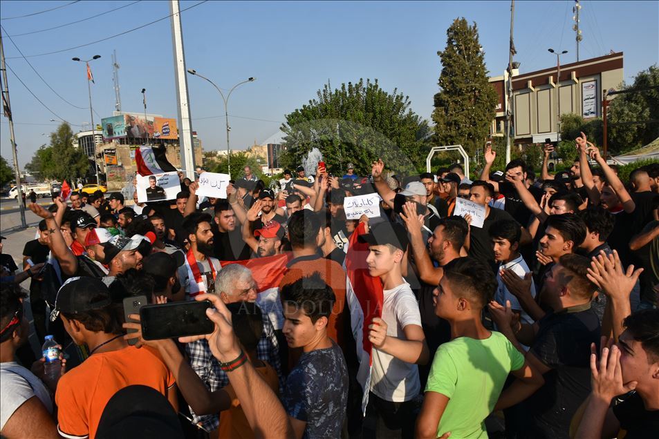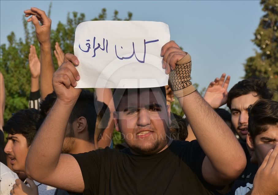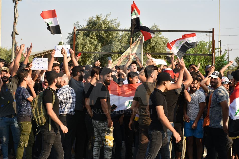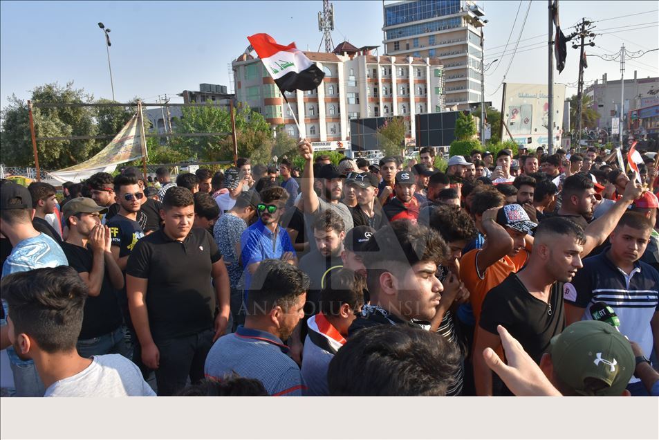 KIRKUK, IRAQ - OCTOBER 02: People gather to protest government due to corruption, unsolved unemployment issue and inadequate public service in front of the governor´s office in Kirkuk, Iraq on October 02, 2019. ( Ali Mukarrem Garip - Anadolu Agency )Ali Mukarrem Garip