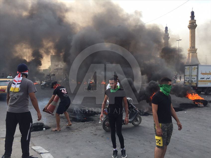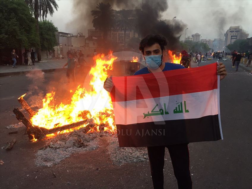 BAGHDAD, IRAQ - OCTOBER 2: Iraqi demonstrators block roads during an anti-government protests in Baghdad, Iraq on October 2, 2019. Thousands of Iraqis took to the streets in Baghdad to protest the government’s failure to improve living standards and fight corruption, with security forces using live ammunition and tear gas to disperse the protesters. ( Murtadha Sudani - Anadolu Agency )Murtadha Sudani