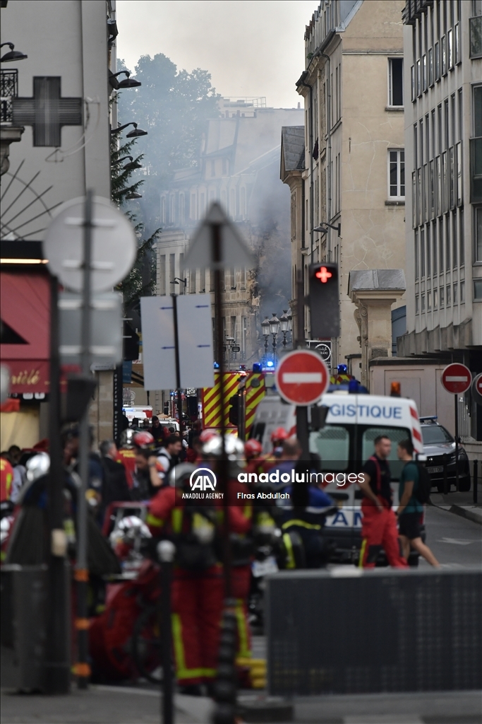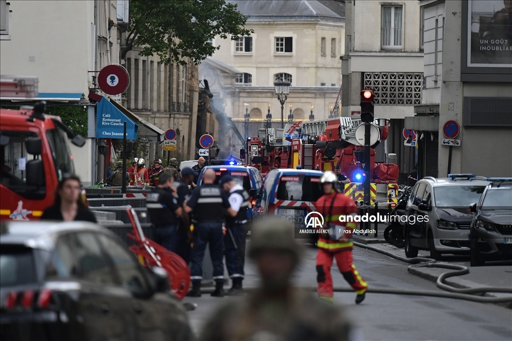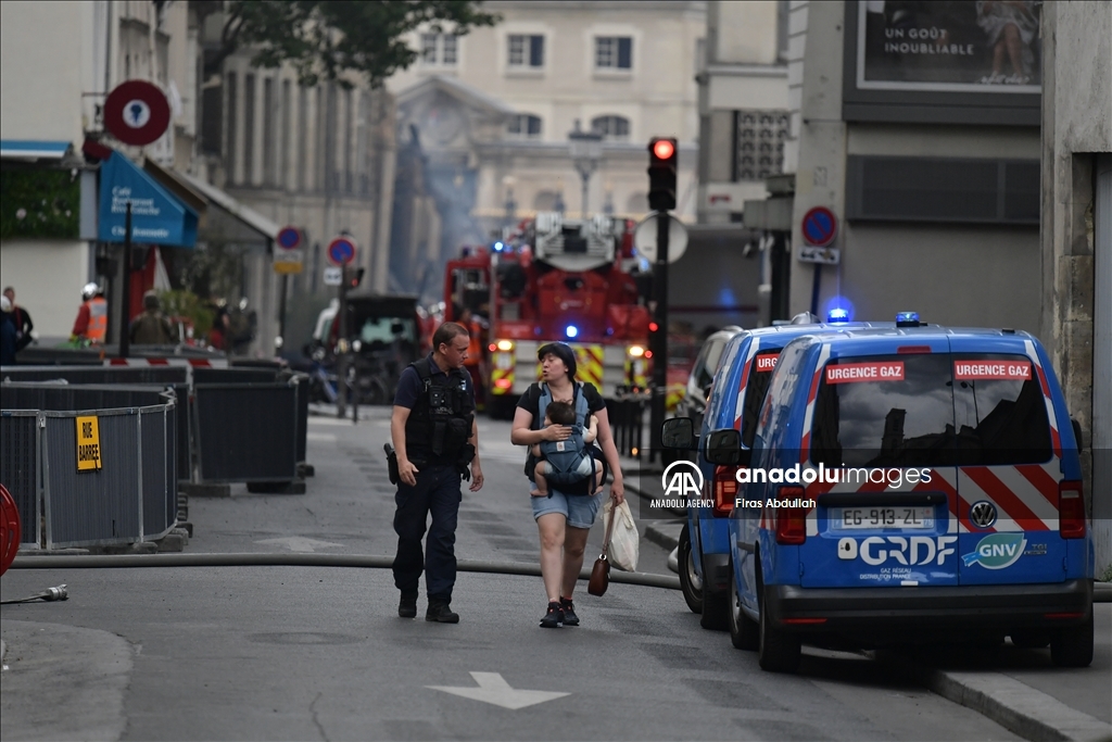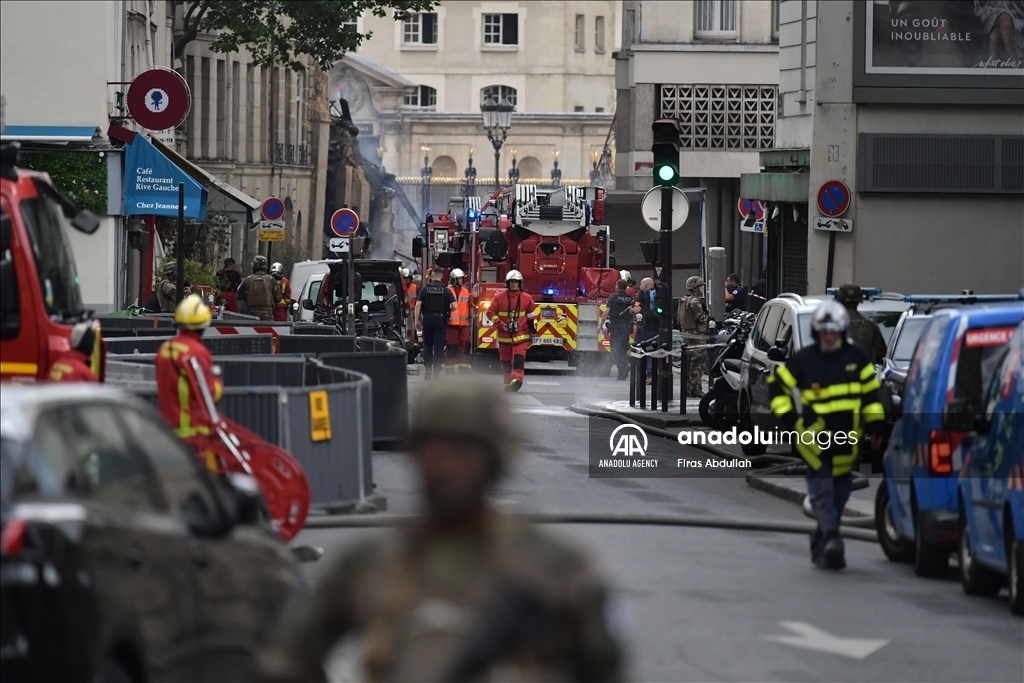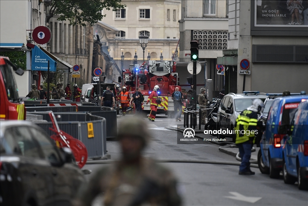 PARIS, FRANCE - JUNE 21: Police take security measures as firefighters arrive in the area after the massive explosion in Paris, France on June 21, 2023. At least seven people were seriously injured in a massive explosion that rocked central Paris on Wednesday evening, local media reported. ( Firas Abdullah - Anadolu Agency )Firas Abdullah