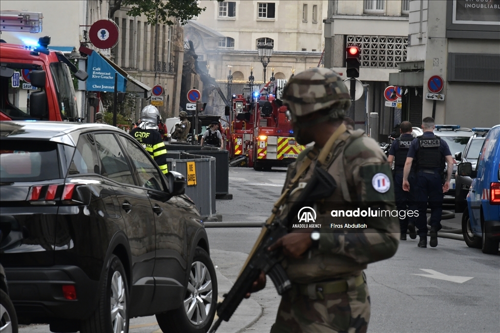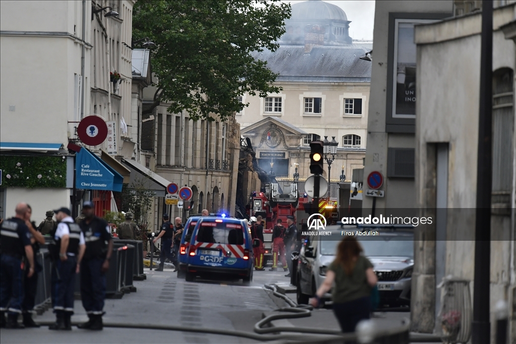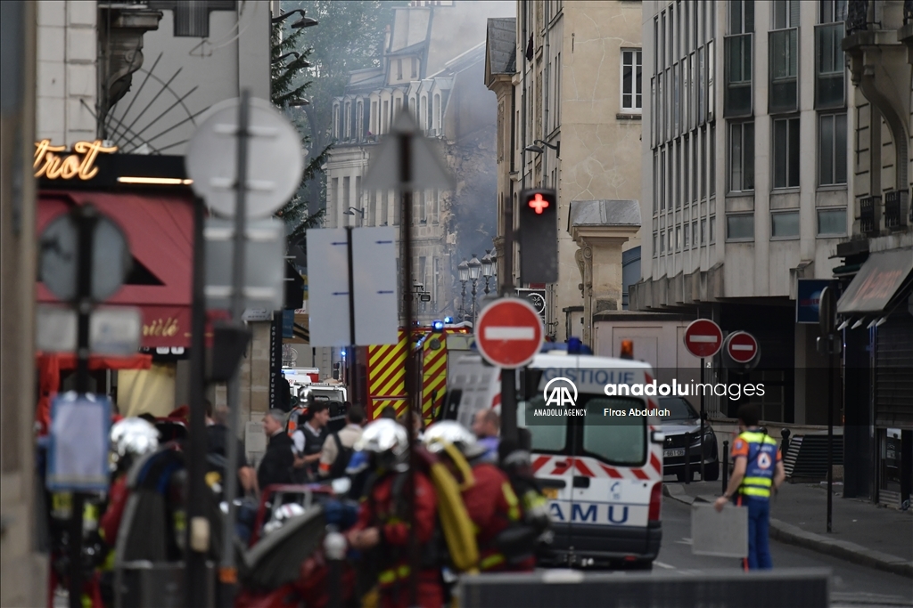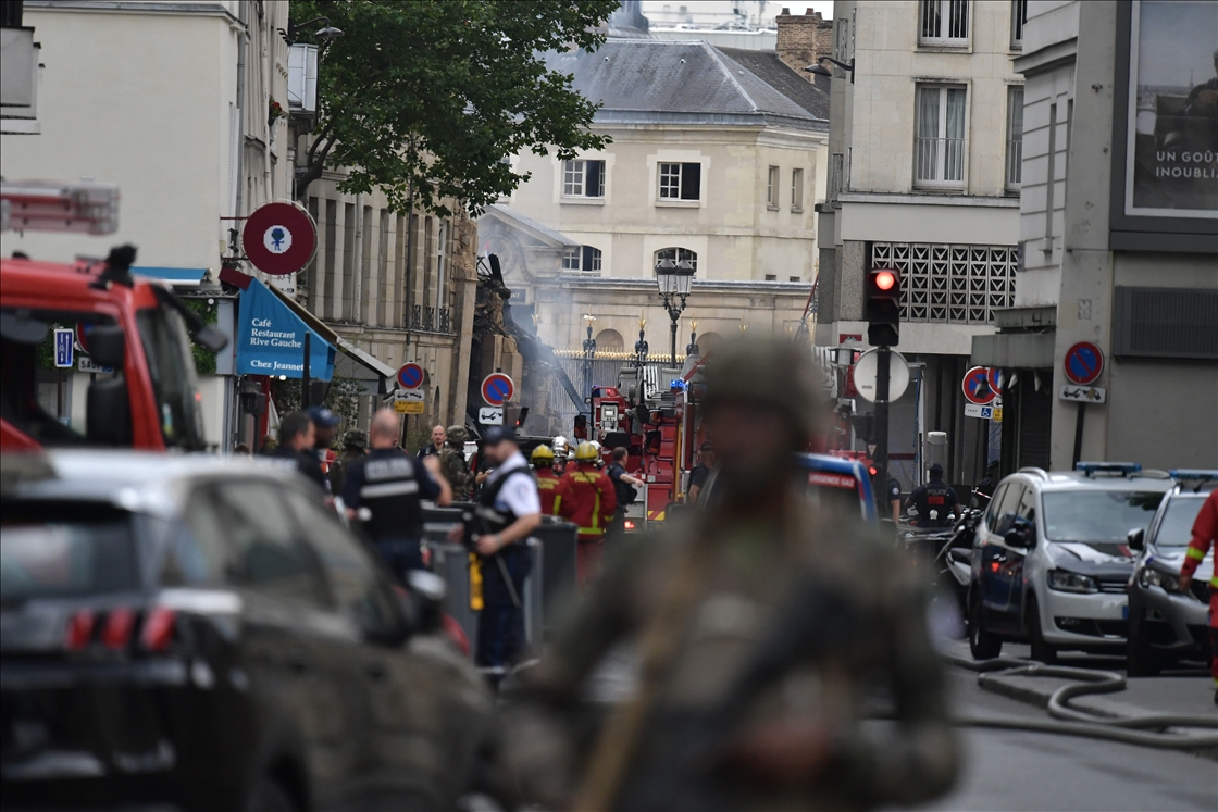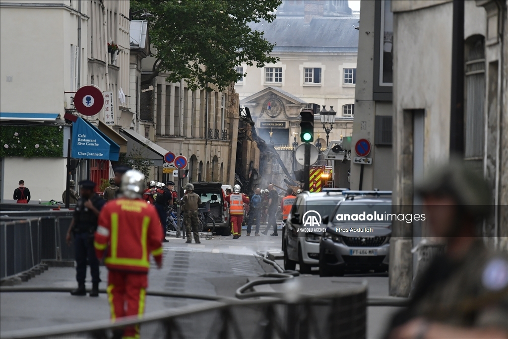 PARIS, FRANCE - JUNE 21: Police take security measures as firefighters arrive in the area after the massive explosion in Paris, France on June 21, 2023. At least seven people were seriously injured in a massive explosion that rocked central Paris on Wednesday evening, local media reported. ( Firas Abdullah - Anadolu Agency )Firas Abdullah