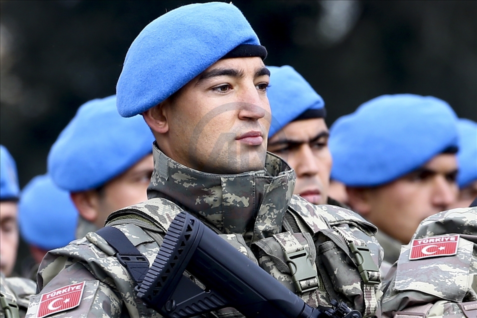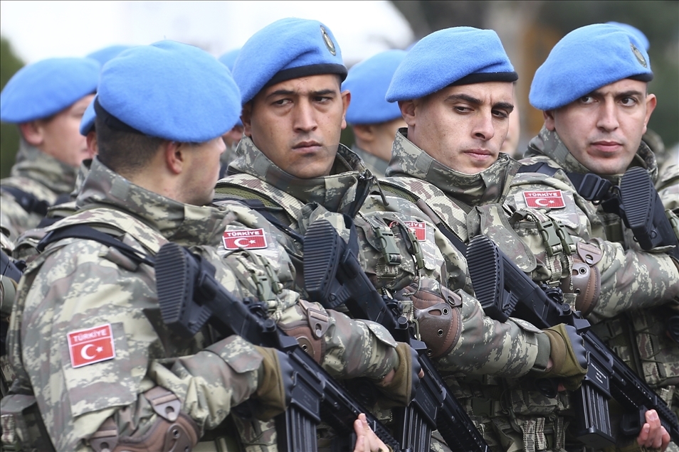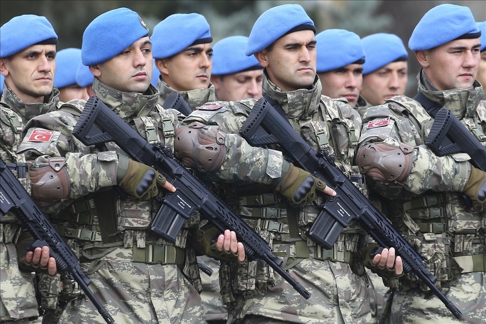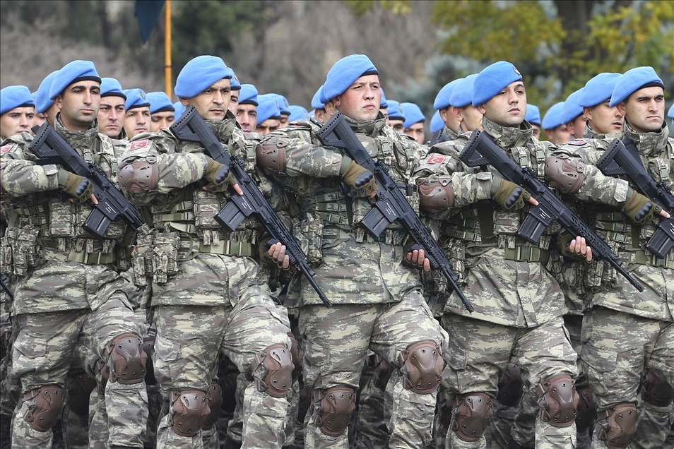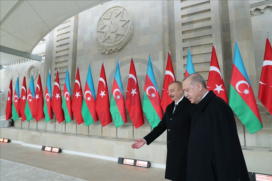 President of Turkey, Recep Tayyip Erdogan (2nd R) and Azerbaijani President Ilham Aliyev (R) view the soldiers and honor guards during the Victory Parade held to celebrate Azerbaijani army's victory in Nagorno-Karabakh on December 10, 2020 in Baku, Azerbaijan.