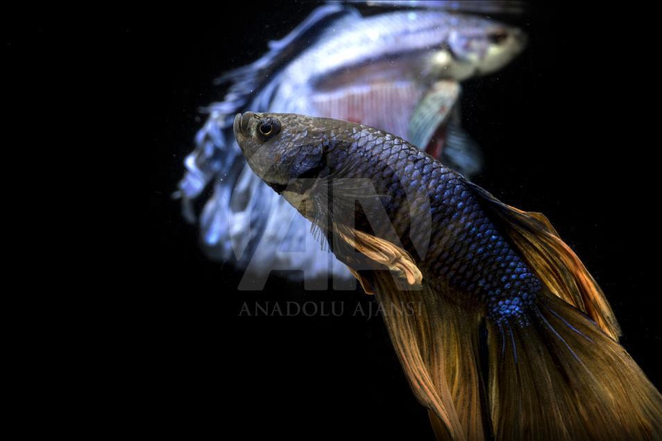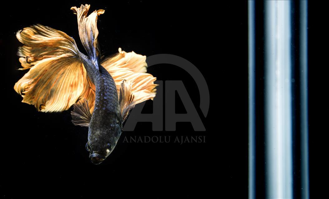 Siamese Fighting Fish also known as Betta splendens are seen in an aquarium in Chicago, United States on May 23, 2018.