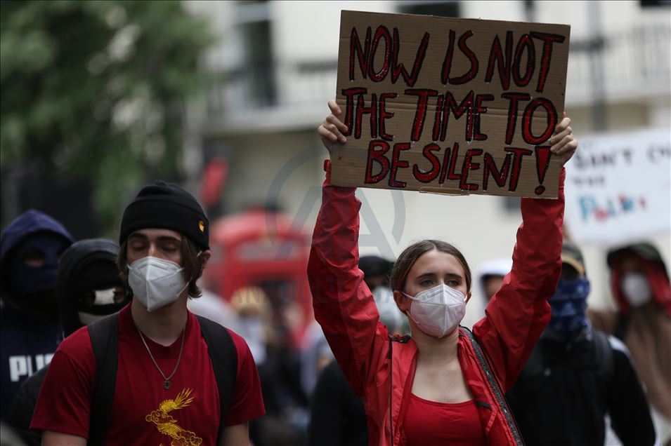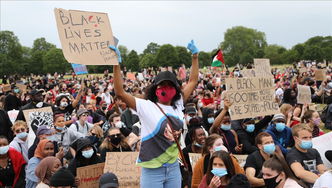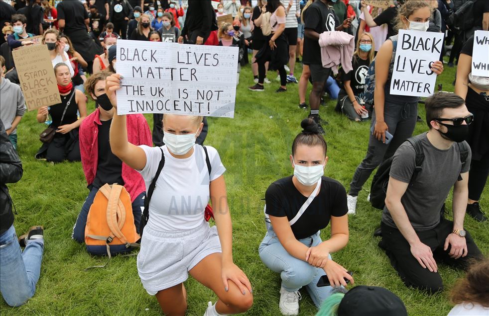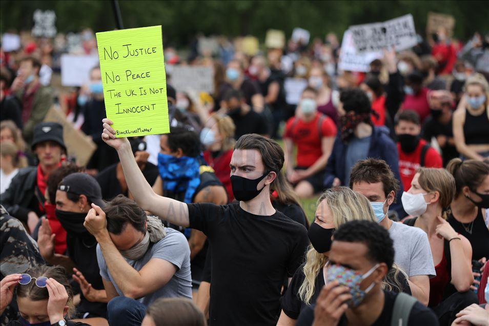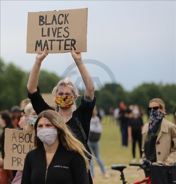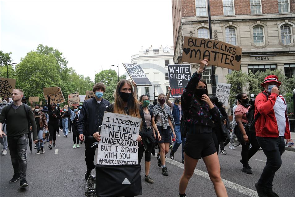 LONDON, ENGLAND - JUNE 03: Protesters take part in a Black Lives Matter Demonstration in solidarity with US demonstrations for George Floyd in central London, United Kingdom on June 3, 2020. Thousands of people gathered in Hyde Park and marched to Trafalgar Square through Victoria, Parliament Square and Whitehall. ( İlyas Tayfun Salcı - Anadolu Agency )İlyas Tayfun Salcı