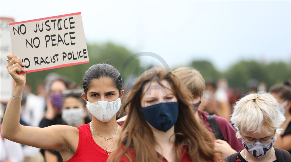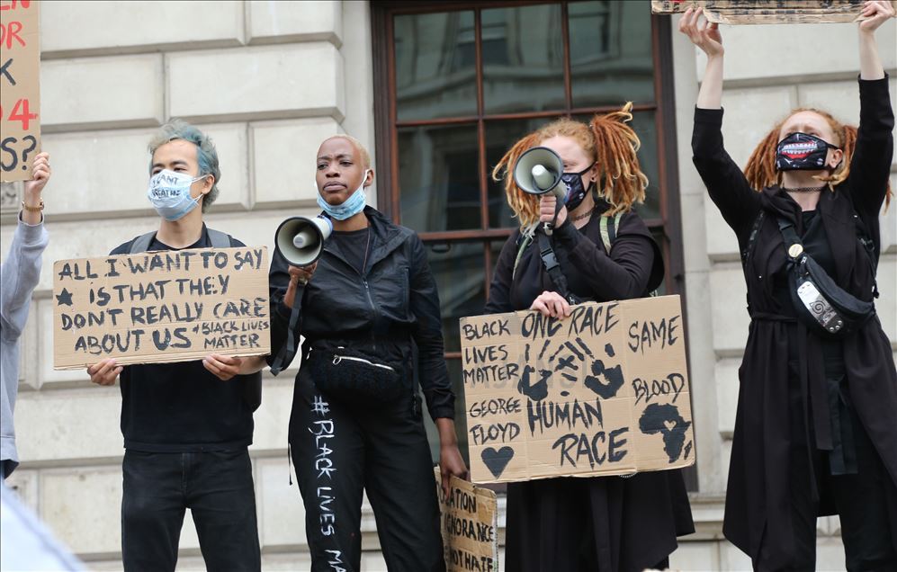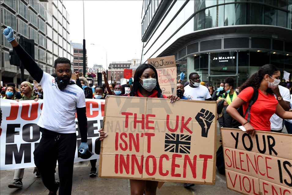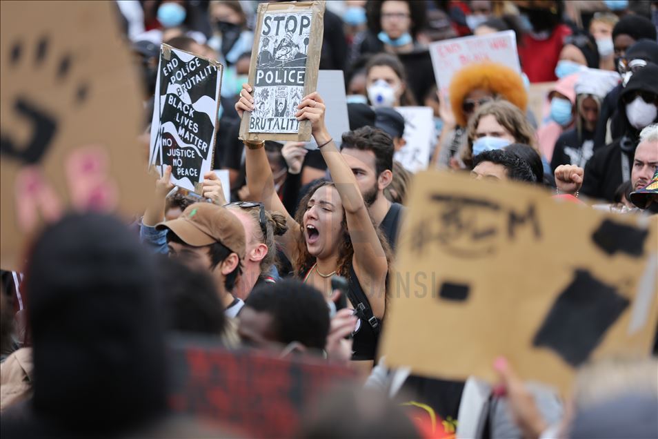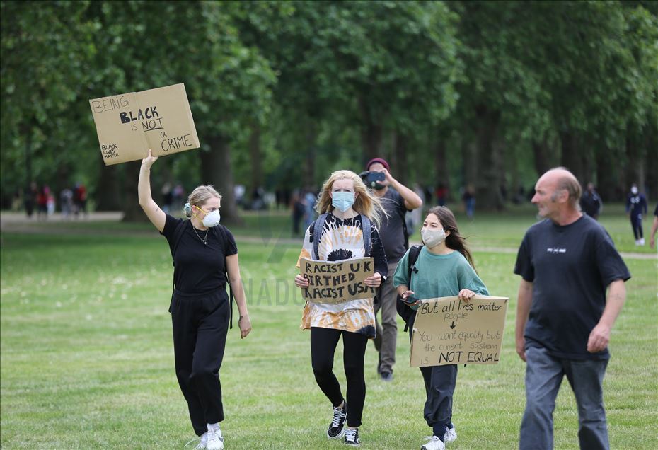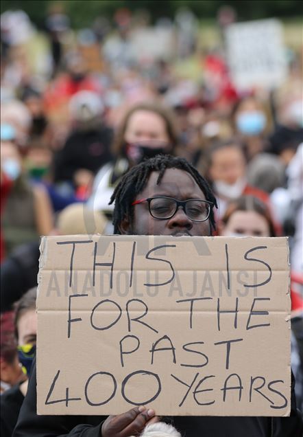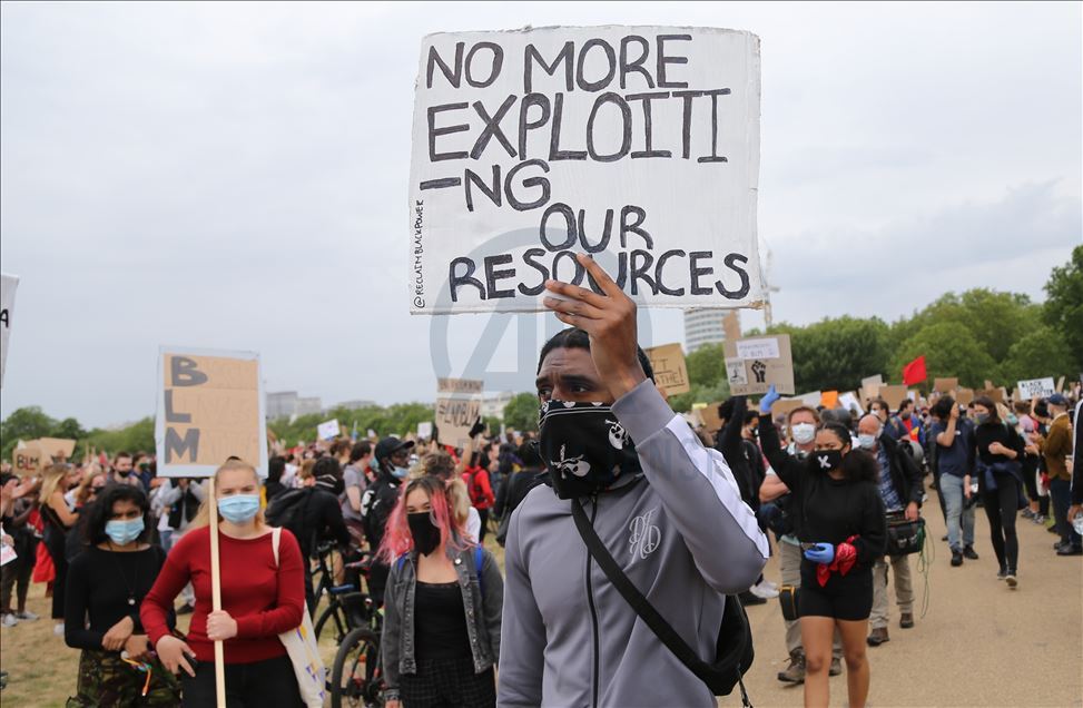 LONDON, ENGLAND - JUNE 03: Protesters take part in a Black Lives Matter Demonstration in solidarity with US demonstrations for George Floyd in central London, United Kingdom on June 3, 2020. Thousands of people gathered in Hyde Park and marched to Trafalgar Square through Victoria, Parliament Square and Whitehall. ( İlyas Tayfun Salcı - Anadolu Agency )İlyas Tayfun Salcı