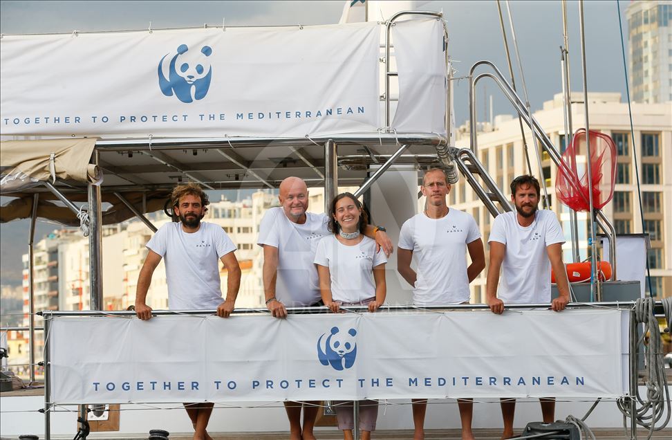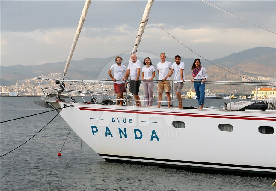IZMIR, TURKEY - OCTOBER 04 : The crew of the World Wildlife Fund (WWF) ship ‘Blue Panda pose for a photo in Izmir, Turkey on October 04, 2019. In its maiden year, the World Wildlife Fund (WWF) ship ‘Blue Panda’ has been making stops at key ports in the Mediterranean with the hopes of stemming the tide of plastics choking the world’s natural environment. ( Evren Atalay - Anadolu Agency )Evren Atalay