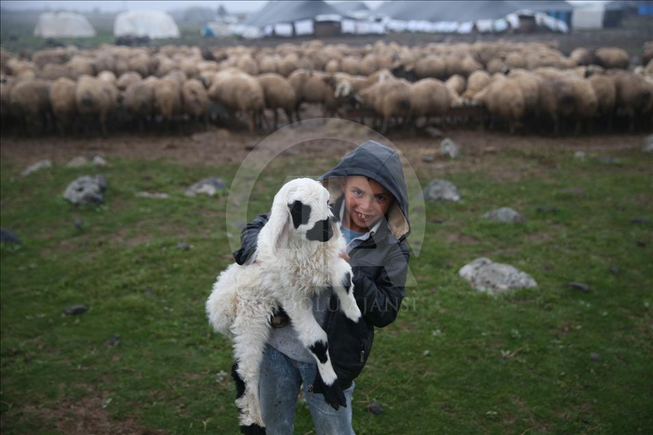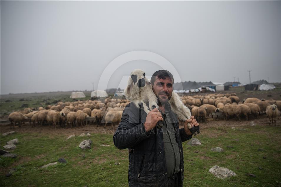 Breeders and their sheep in the southwestern province of Sanliurfa enjoy the unusually high autumn rain which brought green pastures, giving the area's sheep breeders hopes of a good season.