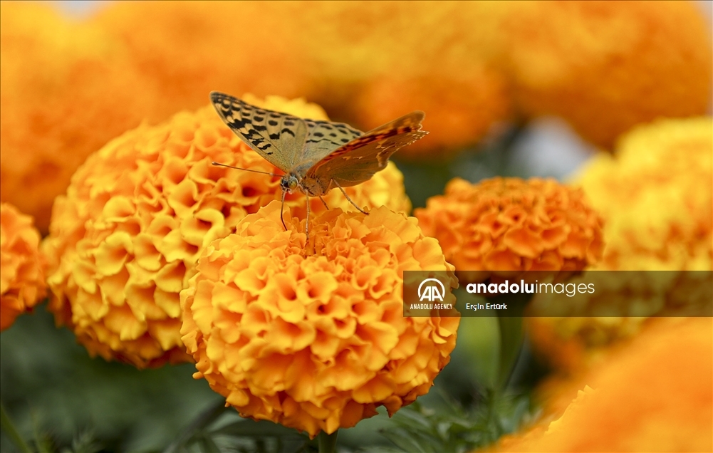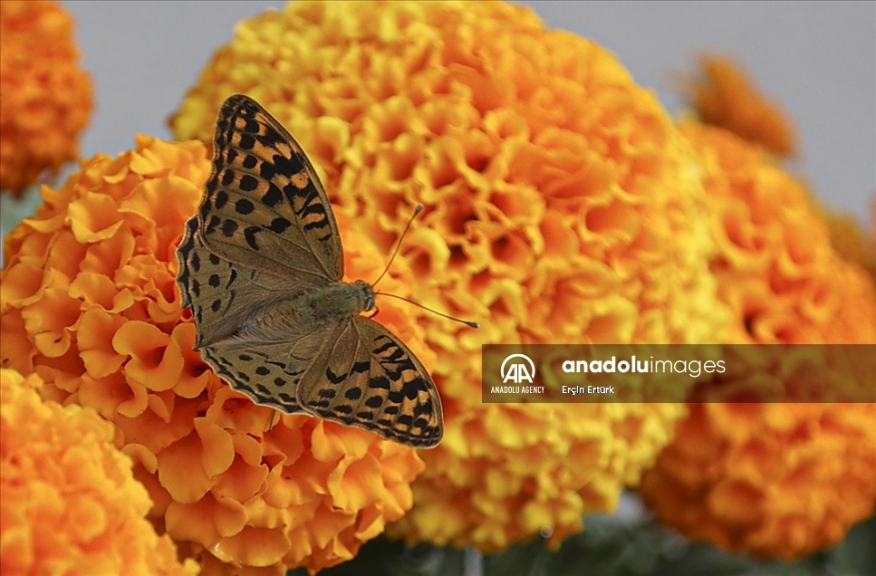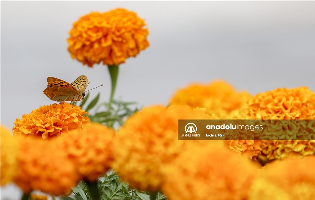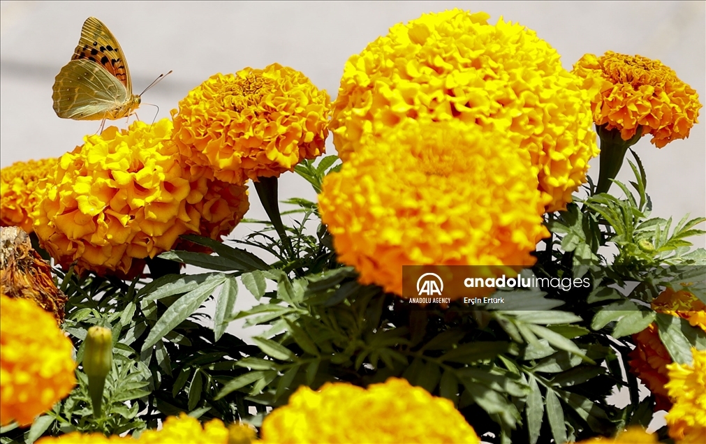 Butterflies are seen on flowers in the garden of the Turkish Grand National Assembly in Ankara