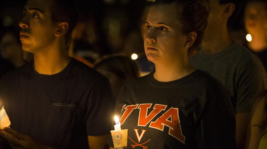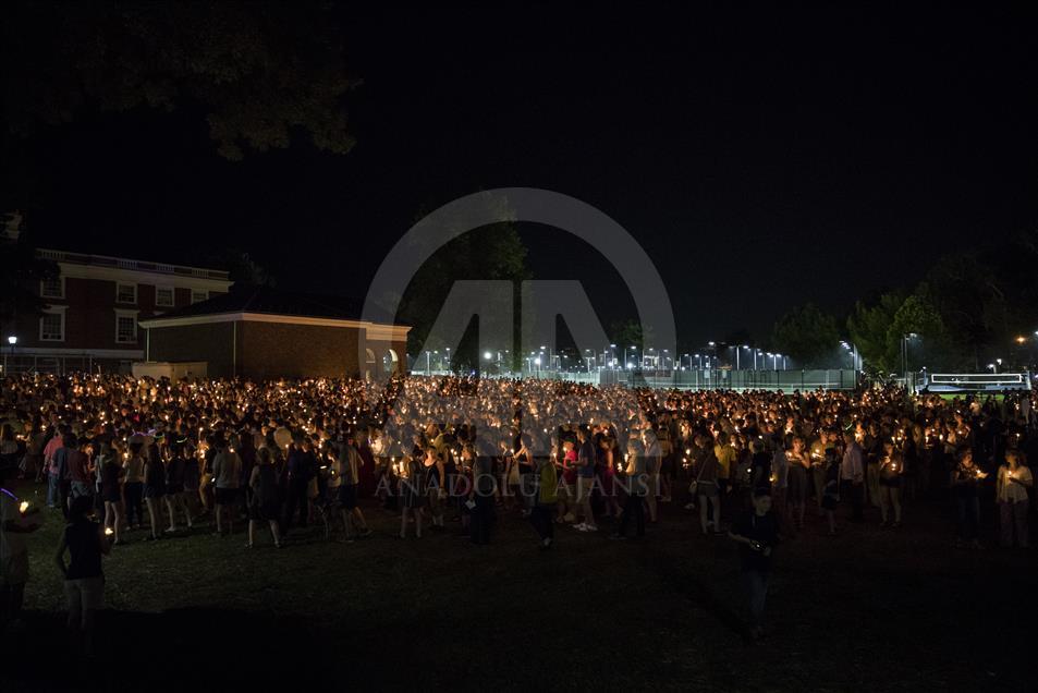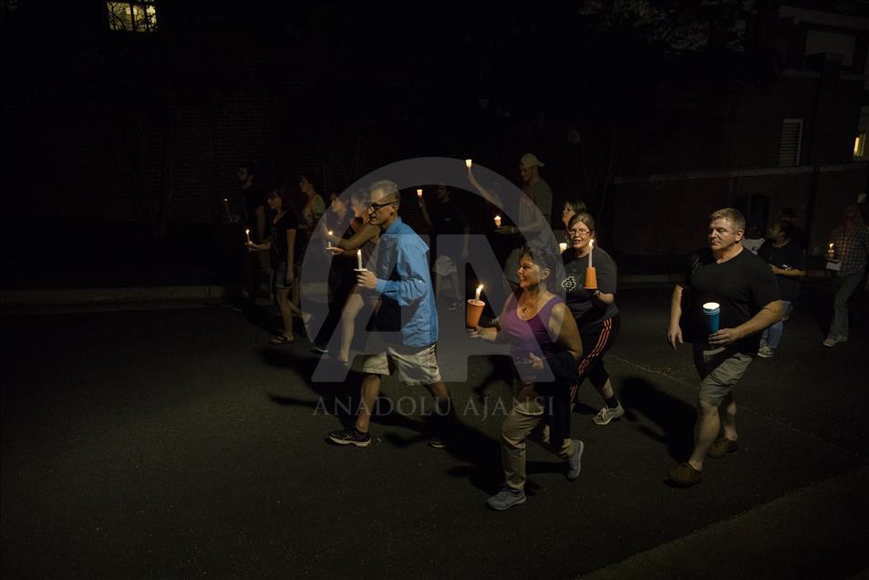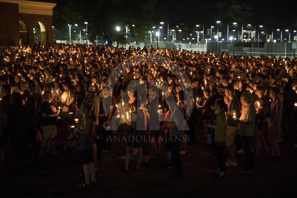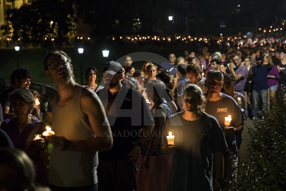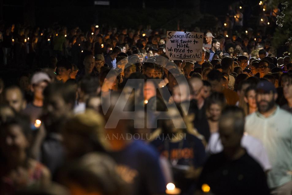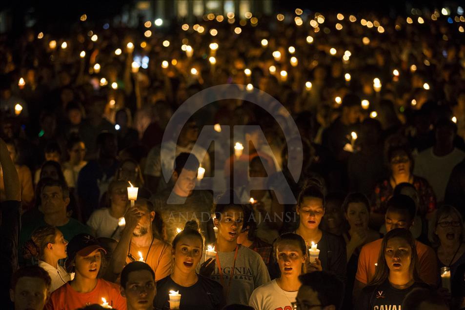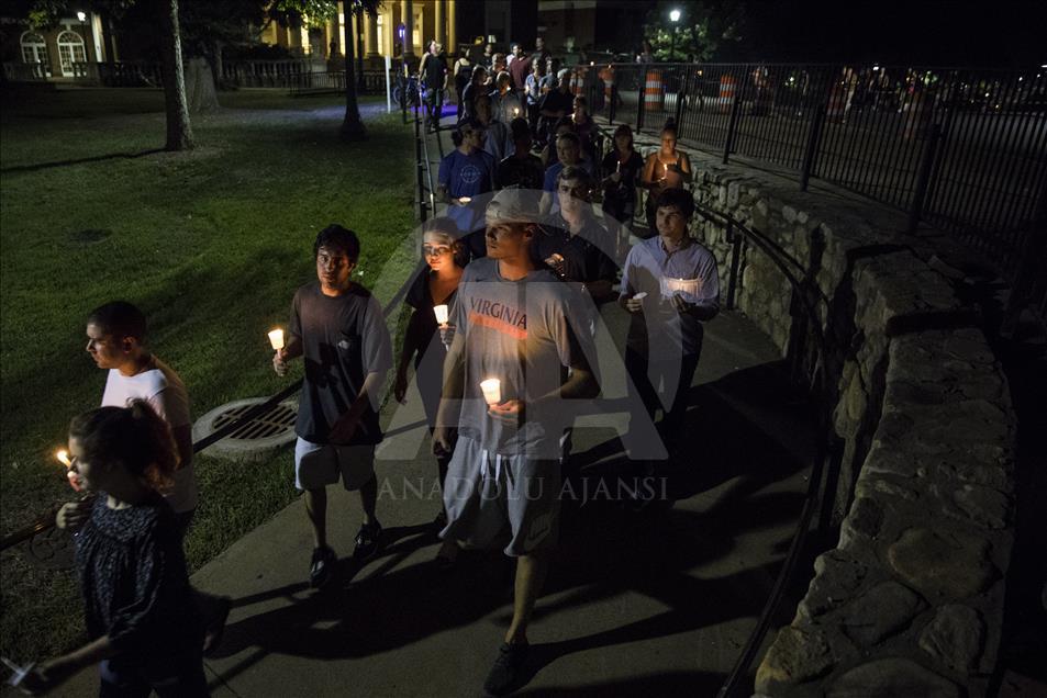CHARLOTTESVILLE, USA - AUGUST 16: Thousands gather with candles to march along the path that White Supremacists took the prior Friday with torches on the University of Virginia Campus in Charlottesville, United States on August 16, 2017. ( Samuel Corum - Anadolu Agency )Samuel Corum