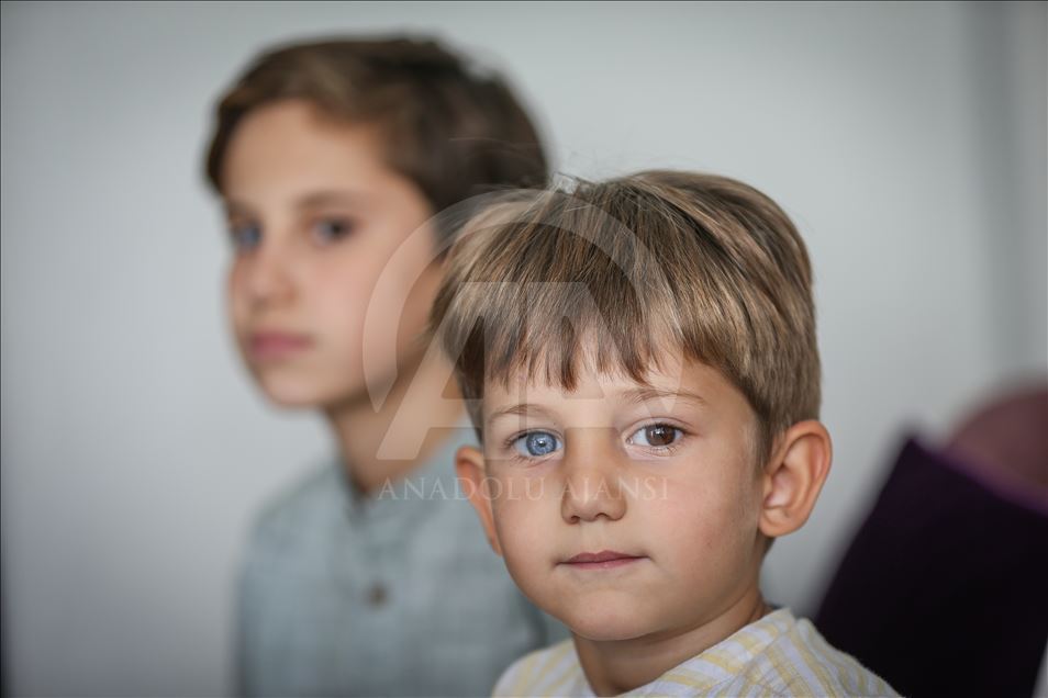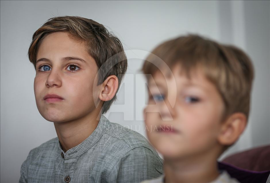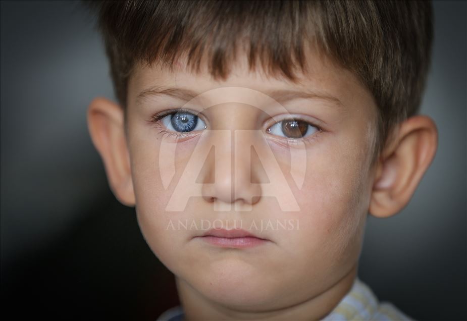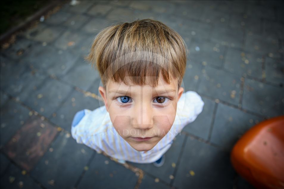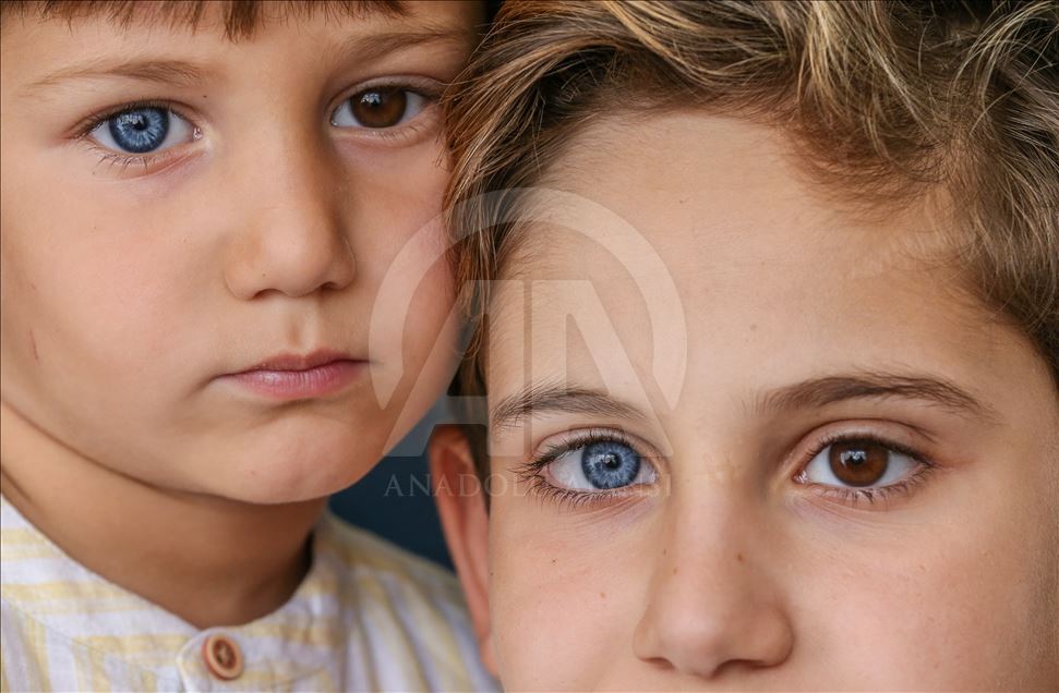 Children with Heterochromia, which means different colors with blue, green and brown eyes etc., in Turkey's Bursa