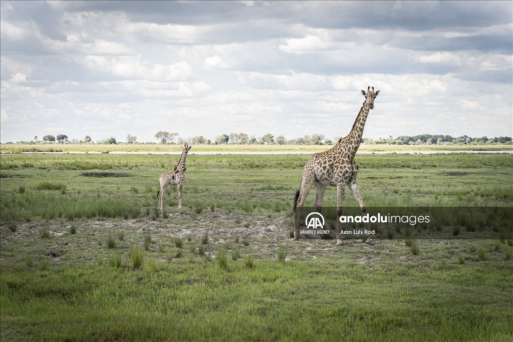 KASANE, BOTSWANA - DECEMBER 24: Giraffes are seen at the Chobe National Park in Kalahari desert at Kasane, Botswana on December 24, 2022. Chobe National Park is the 3rd biggest national park in the country. The park hosts various animals including elephants, tigers, gazelles, giraffes. ( Juan Luis Rod - Anadolu Agency )Juan Luis Rod