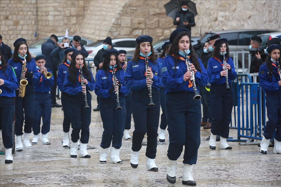 Palestinian marching band parade as part of Christmas celebrations in Bethlehem, West Bank on December 24, 2020.Issam Rimawi