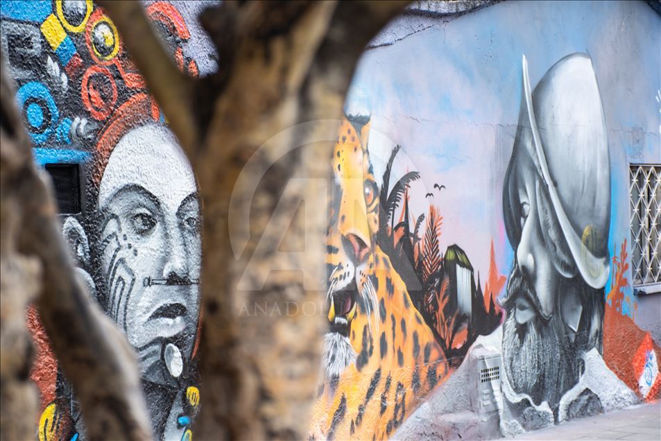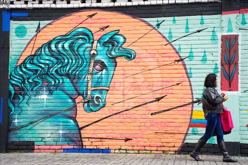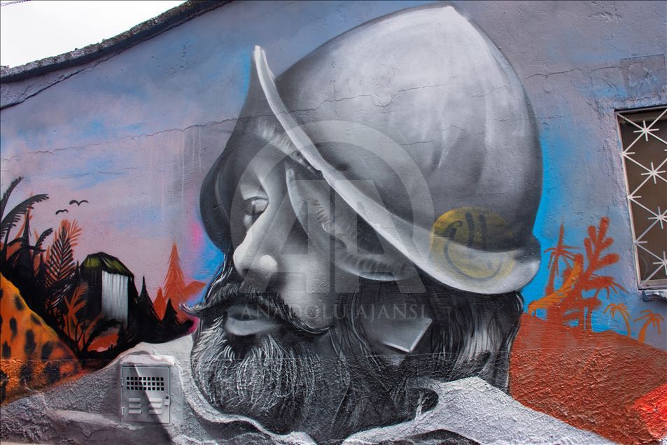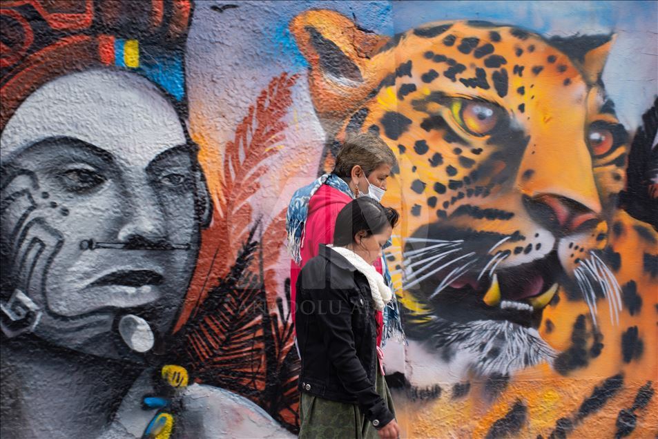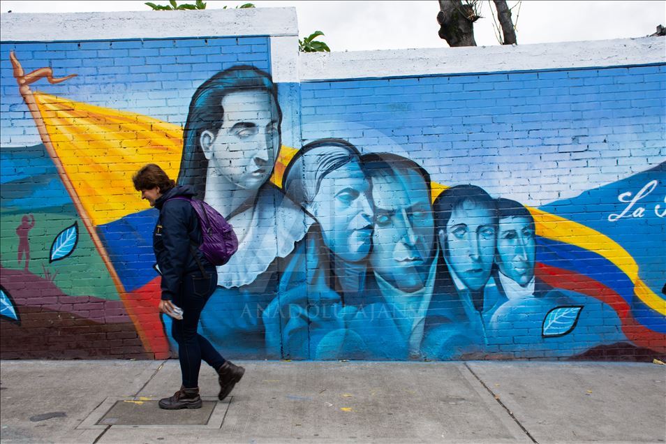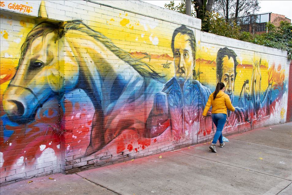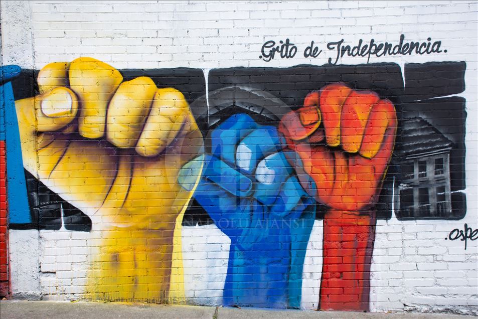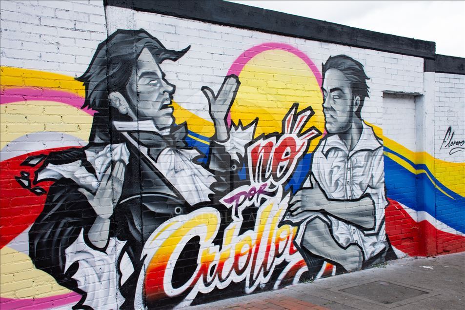 BOGOTA, COLOMBIA - JULY 20: Graffiti arts painted to mark independence day in Bogota, Colombia on July 19,2019. Urban artists (Zona 57 collective) and governmental institutions (Marca Pais Colombia and ProColombia) commemorated 200 years of Colombia's independence with a graffiti tour in the traditional "20 de julio" (July 20) neighborhood, that, curiously, gets its name from the day is celebrated the National Independence Day. The walking tour is through streets painted with murals that stress national pride out. ( Harrison Caballero - Anadolu Agency )Harrison Caballero