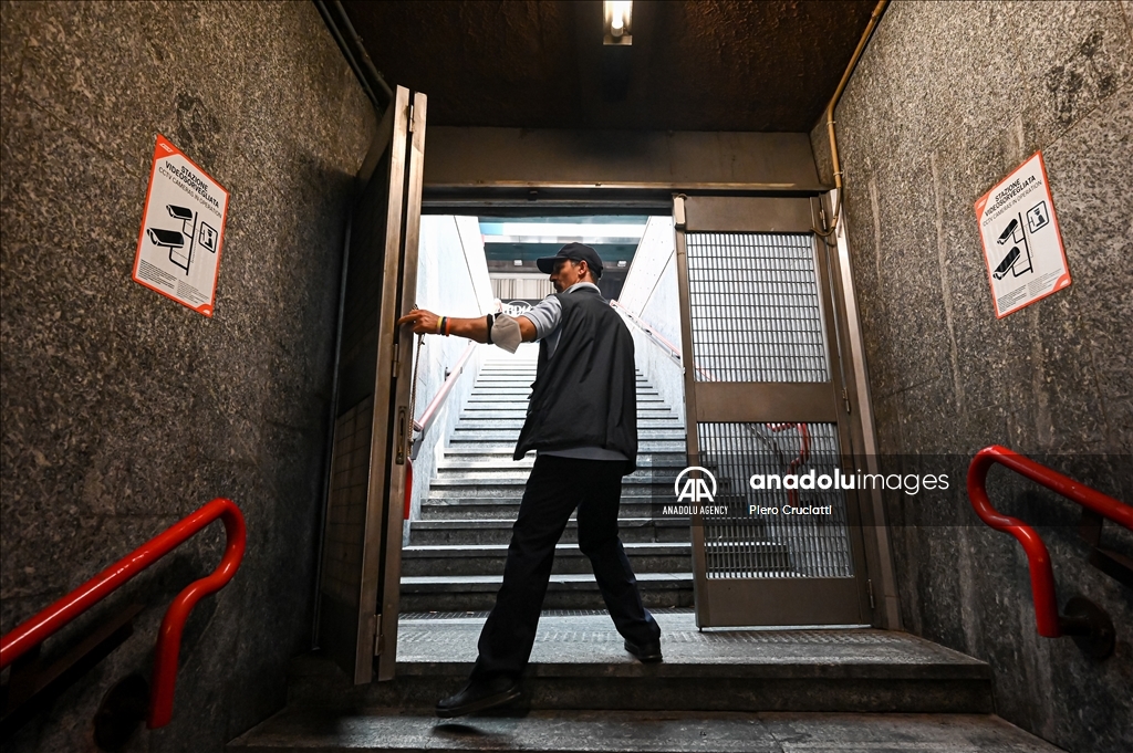 İtalya'nın Milano kentinde toplu taşıma çalışanları kendilerine karşı saldırıların artmasının ardından grev kararı aldı. Birçok tren seferinin ertelenmesiyle Cadarno metro istasyonunun boş kaldığı görüntülendi. Polis metro istasyonunda önlem aldı. ( Piero Cruciatti - Anadolu Ajansı )Piero Cruciatti