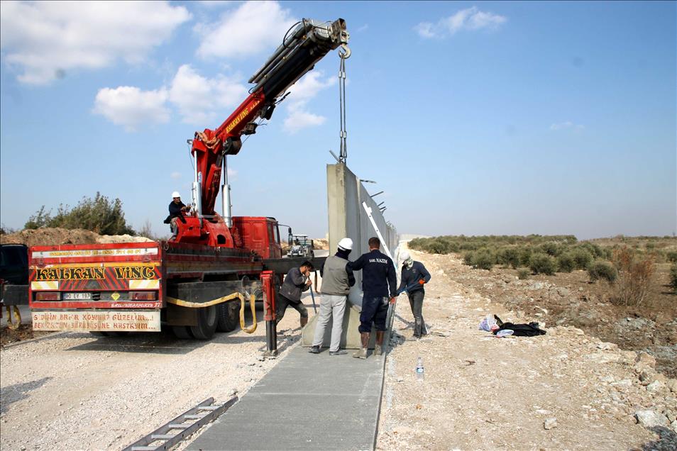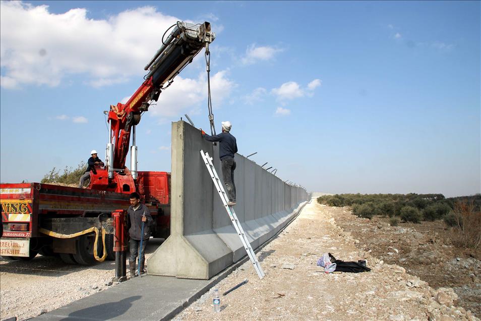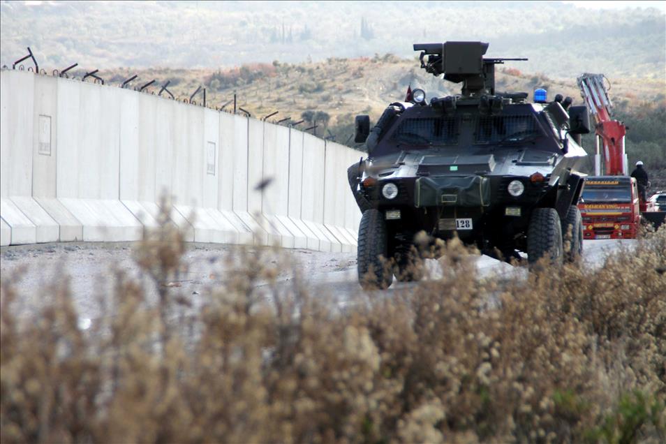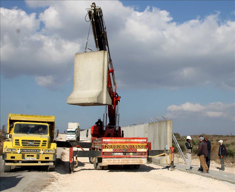 HATAY, TURKEY - JANUARY 5: Concrete wall is built along the Turkey - Syria border in Hatay, Turkey on January 5, 2016. Security measures are being heightened at the Syrian border in Yayladagi district, Hatay, where over a hundred thousand people and four thousand smuggled animals have been caught over the last year. The border is guarded 24 hours a day with armored vehicles and work has begun to construct a 4-meter high "concrete block" wall in the district and neighboring Altinozu. (Ramazan Özdemir - Anadolu Agency)Ramazan Özdemir