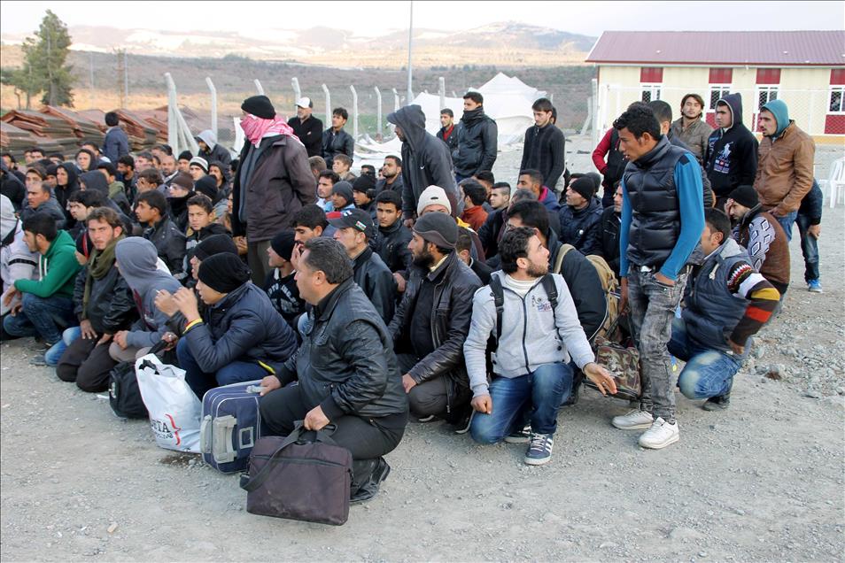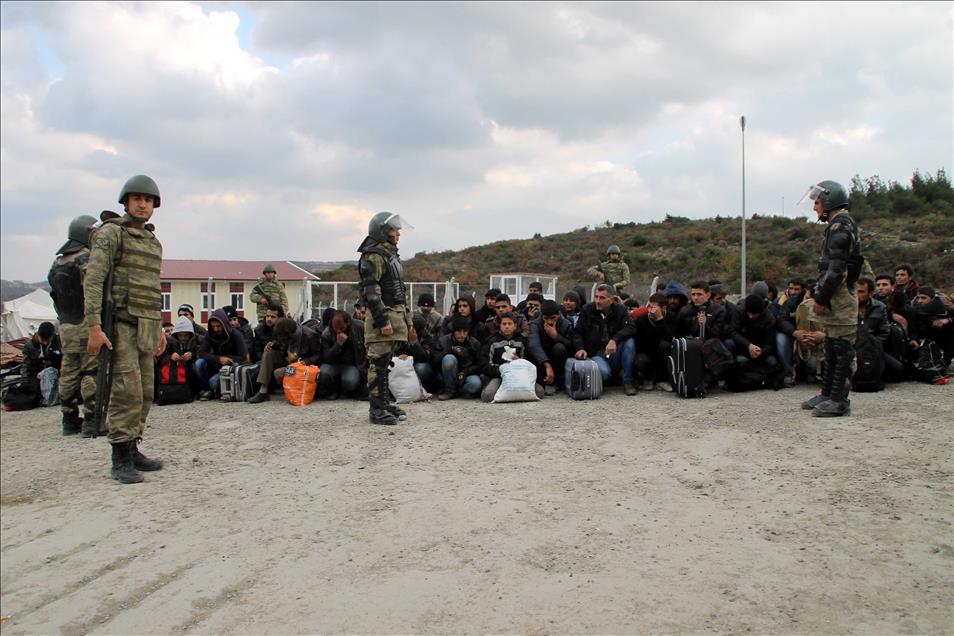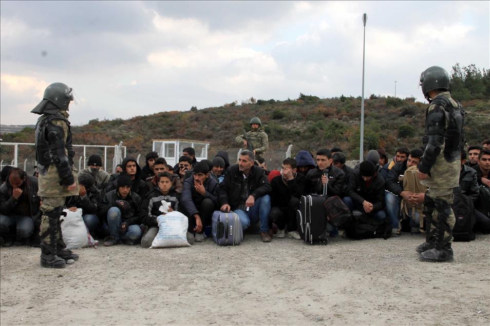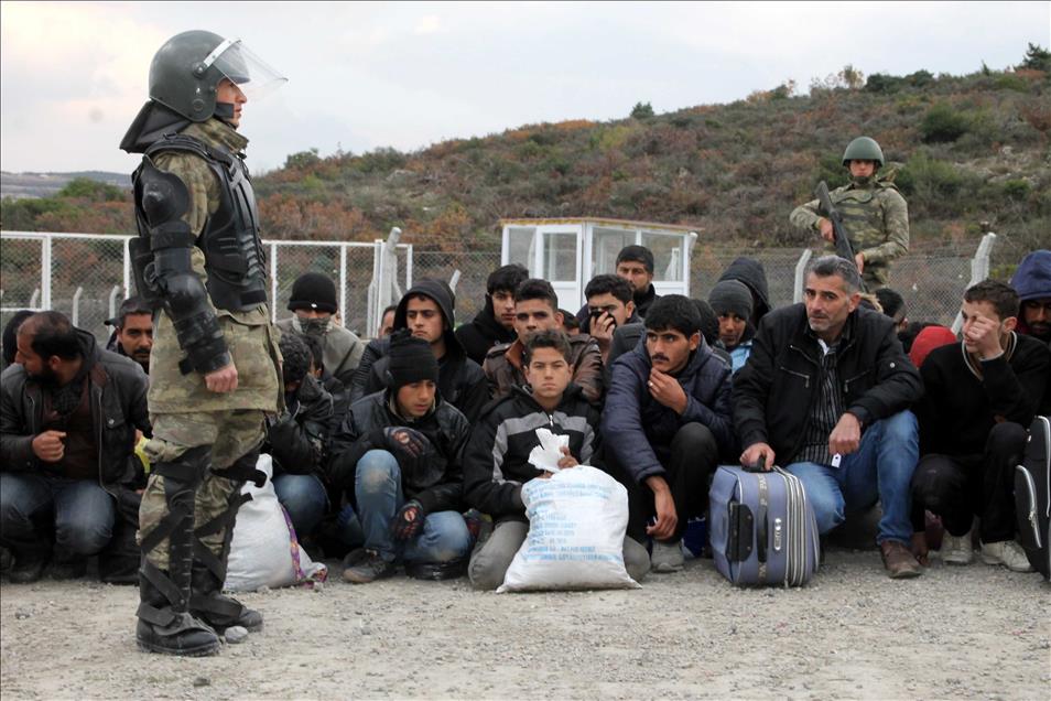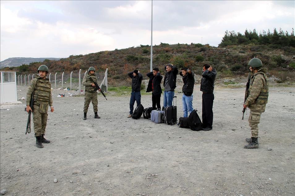 HATAY, TURKEY - JANUARY 5: Turkish soldiers detain people who tried to cross into Turkey from Syria illegally in Hatay, Turkey on January 5, 2016. Security measures are being heightened at the Syrian border in Yayladagi district, Hatay, where over a hundred thousand people and four thousand smuggled animals have been caught over the last year. The border is guarded 24 hours a day with armored vehicles and work has begun to construct a 4-meter high "concrete block" wall in the district and neighboring Altinozu.