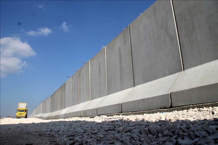 HATAY, TURKEY - JANUARY 5: Concrete wall built along the Turkey - Syria border is seen in Hatay, Turkey on January 5, 2016. Security measures are being heightened at the Syrian border in Yayladagi district, Hatay, where over a hundred thousand people and four thousand smuggled animals have been caught over the last year. The border is guarded 24 hours a day with armored vehicles and work has begun to construct a 4-meter high "concrete block" wall in the district and neighboring Altinozu. (Ramazan Özdemir - Anadolu Agency)Ramazan Özdemir