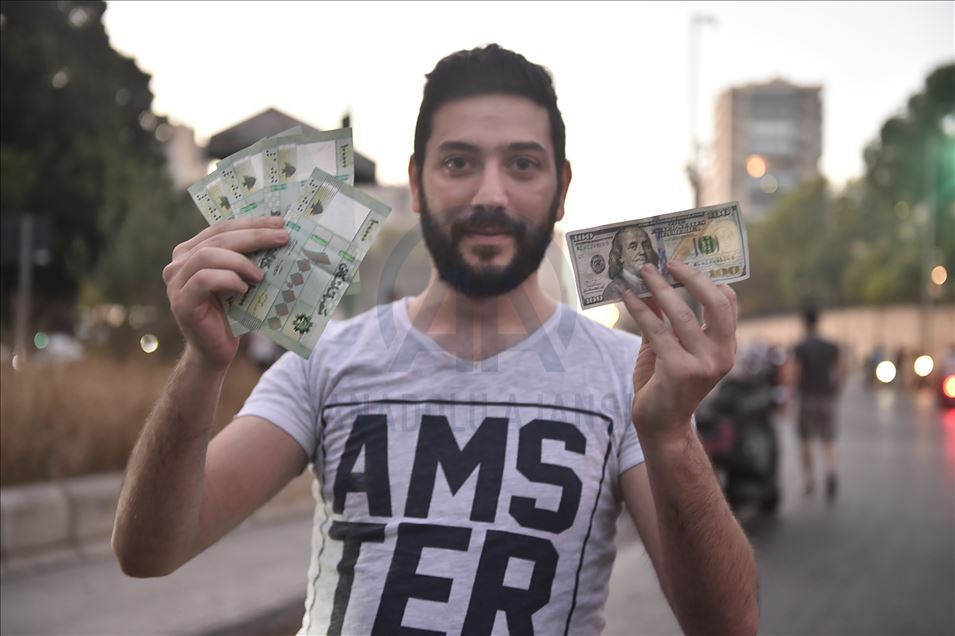 BEIRUT, LEBANON - JUNE 11: A man holds a dollar and Lebanese pounds as he poses for a photo during a protest against dire economic conditions and depreciation in the value of the Lebanese pound against the dollar due to the coronavirus (COVID-19) pandemic in the Lebanese capital Beirut on June 11, 2020. ( Houssam Shbaro - Anadolu Agency )Houssam Shbaro
