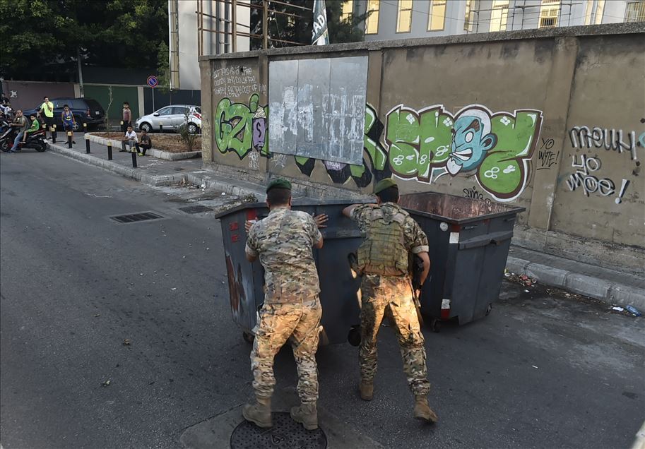 BEIRUT, LEBANON - JUNE 11: Security forces move trash bins placed by protesters to block a road during a protest against dire economic conditions and depreciation in the value of the Lebanese pound against the dollar due to the coronavirus (COVID-19) pandemic in the Lebanese capital Beirut on June 11, 2020. ( Houssam Shbaro - Anadolu Agency )Houssam Shbaro