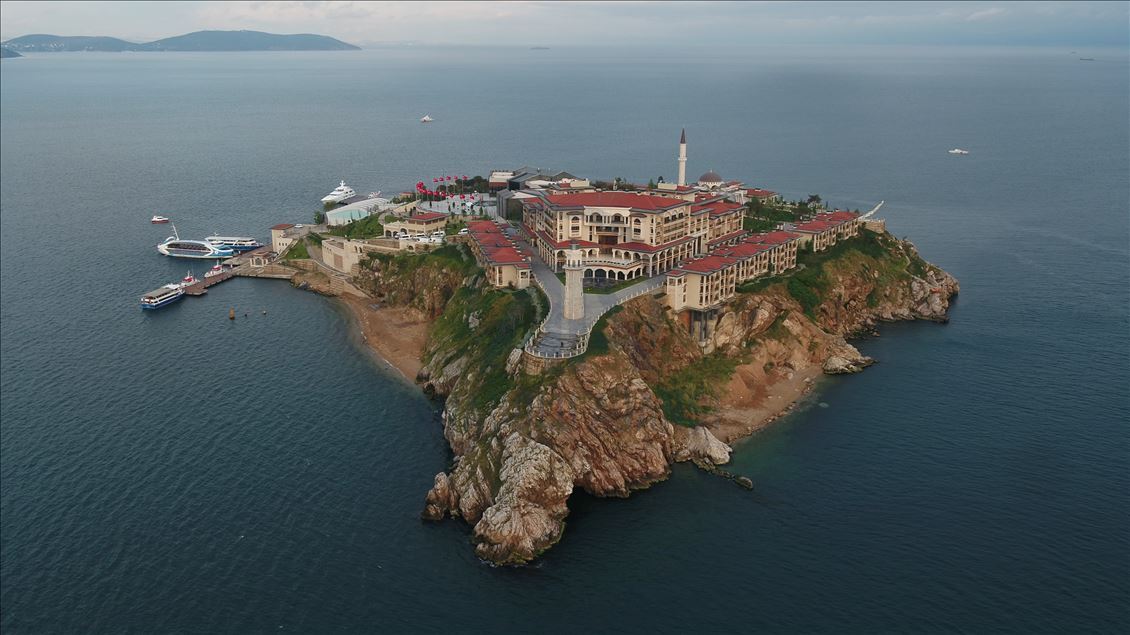 ISTANBUL, TURKEY - MAY 27: (----EDITORIAL USE ONLY – MANDATORY CREDIT - " TURKISH PRESIDENCY / HANDOUT" - NO MARKETING NO ADVERTISING CAMPAIGNS - DISTRIBUTED AS A SERVICE TO CLIENTS----) A drone photo shows Democracy and Liberties Island in Istanbul, Turkey on May 27, 2020. Yassiada, located in the Sea of Marmara southeast of Istanbul and notorious for jails and trials from the 1960 military coup, was renamed Democracy and Freedom Island. ( Turkish Presidency /Handout - Anadolu Agency )Turkish Presidency /Handout