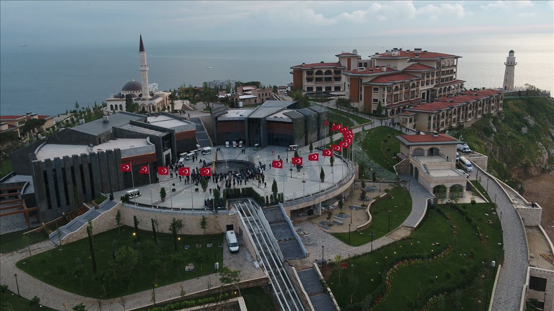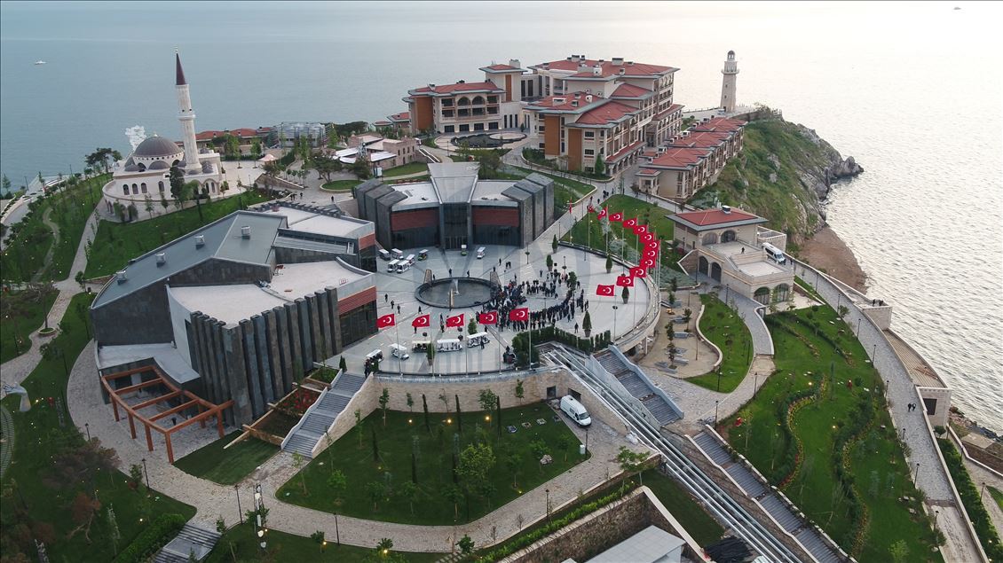 A drone photo shows Democracy and Liberties Island in Istanbul, Turkey on May 27, 2020.
