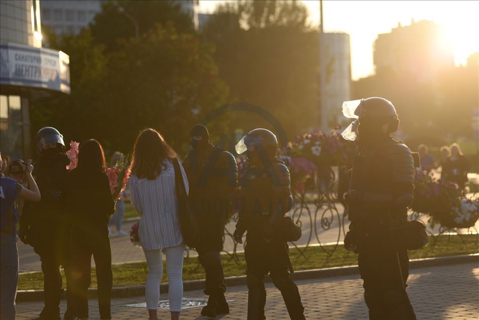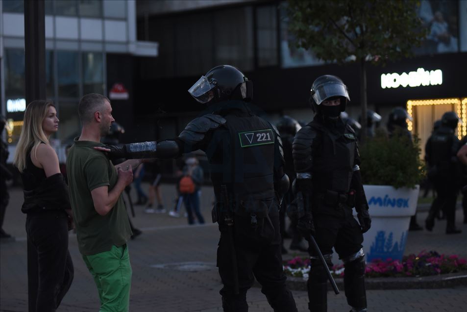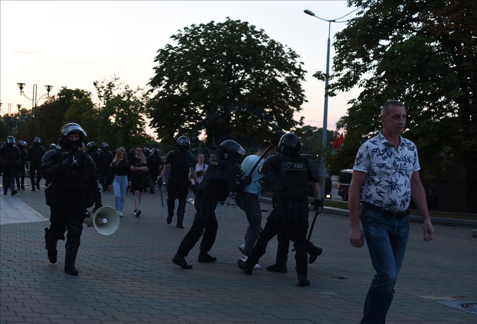 MINSK, BELARUS - AUGUST 10: Protestors continue their unauthorized demonstrations at streets despite police intervention, after the early election results in Minsk, Belarus on August 10, 2020. Belarusian President Alexander Lukashenko won a sixth term in office with over 80% of the vote, the country's election commission said Monday. Officials maintain the results are valid, however, the opposition candidates protested the results, supported by thousands of people who took to the streets throughout the country.