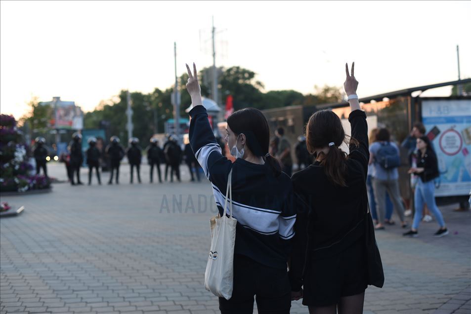Protestors continue their unauthorized demonstrations at streets despite police intervention, after the early election results in Minsk, Belarus on August 10, 2020