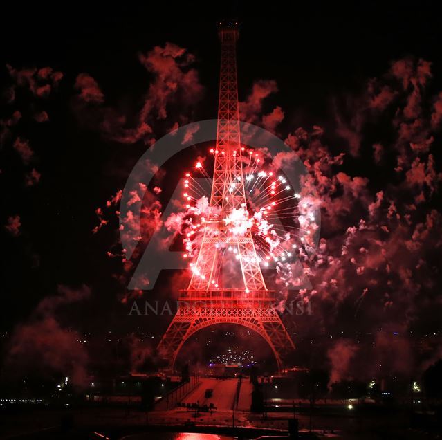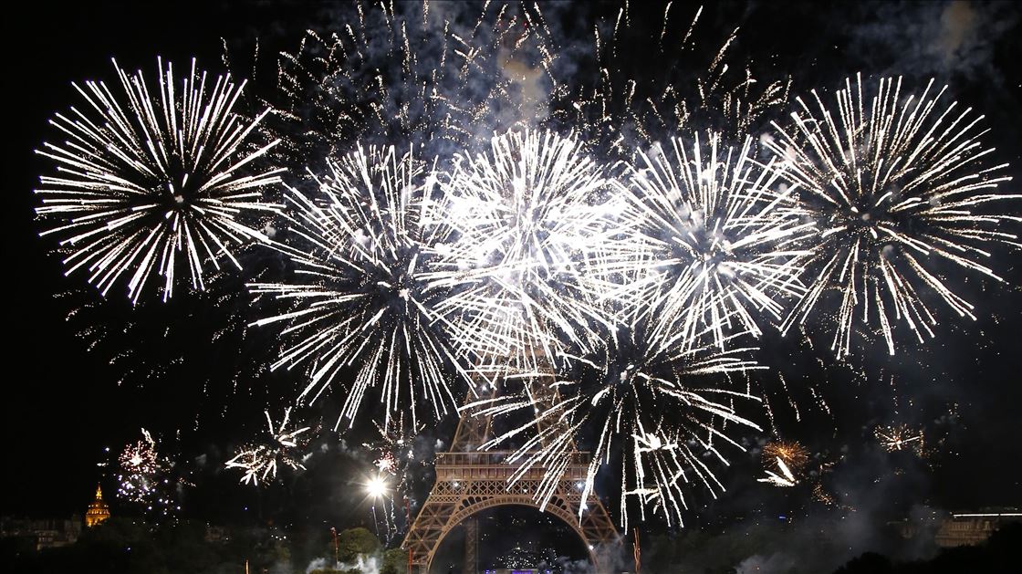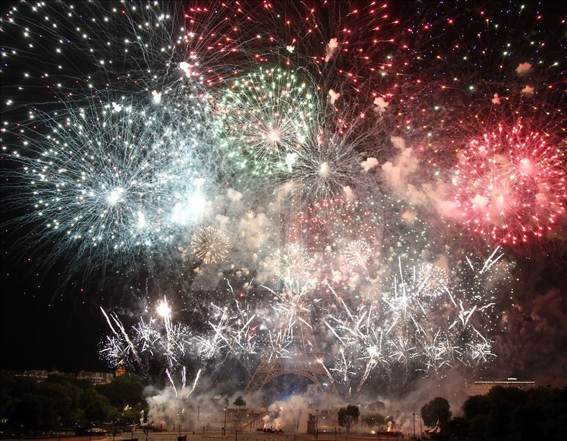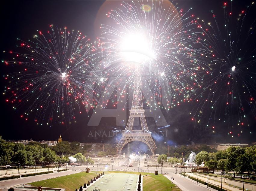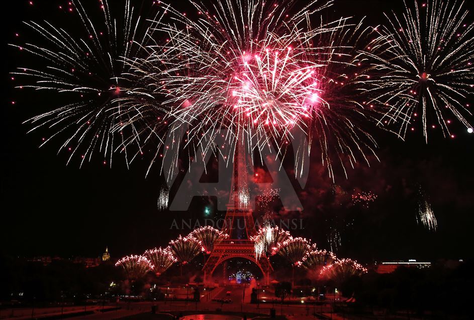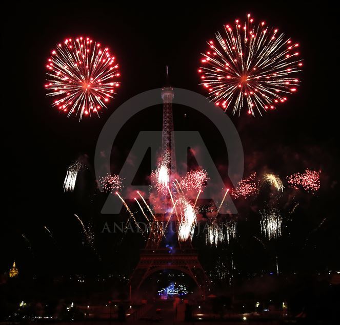 PARIS, FRANCE - JULY 14: Fireworks illuminate the sky around the Eiffel Tower as part of the Bastille Day celebrations in Paris, France on July 14, 2019. ( Mustafa Yalçın - Anadolu Agency )Mustafa Yalçın