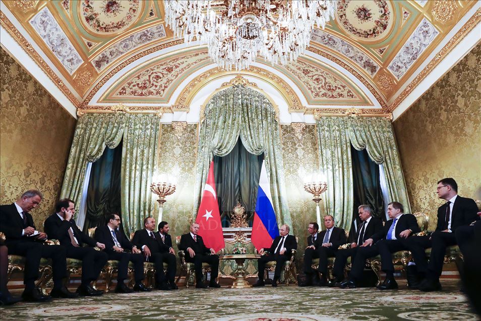 MOSCOW, RUSSIA - APRIL 08: Turkish President Recep Tayyip Erdogan (C-L) meets Russian President Vladimir Putin (C-R) at Kremlin Palace in Moscow, Russia on April 08, 2019. ( Sefa Karacan - Anadolu Agency )Sefa Karacan