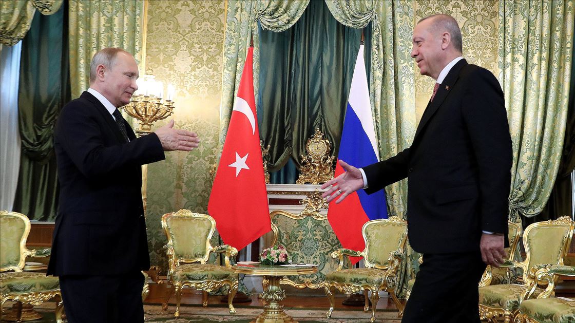 MOSCOW, RUSSIA - APRIL 08: (----EDITORIAL USE ONLY – MANDATORY CREDIT - "TURKISH PRESIDENCY / CEM OKSUZ / HANDOUT" - NO MARKETING NO ADVERTISING CAMPAIGNS - DISTRIBUTED AS A SERVICE TO CLIENTS----) Turkish President Recep Tayyip Erdogan (R) meets Russian President Vladimir Putin (L) at Kremlin Palace in Moscow, Russia on April 08, 2019. ( Turkish Presidency / Cem Oksuz - Anadolu Agency )Turkish Presidency / Cem Oksuz
