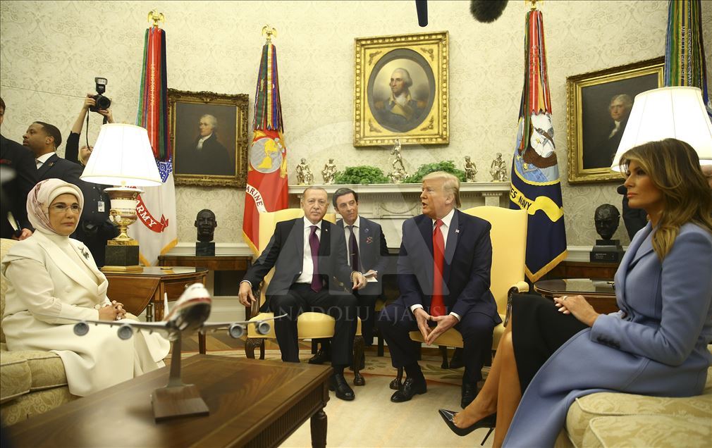 WASHINGTON, USA - NOVEMBER 13: President of Turkey Recep Tayyip Erdogan (2nd L) and his wife Emine Erdogan (L) meet US President Donald Trump (2nd R) and his wife Melania Trump (R) at the White House in Washington, United States on November 13, 2019. ( Halil Sağırkaya - Anadolu Agency )Halil Sağırkaya
