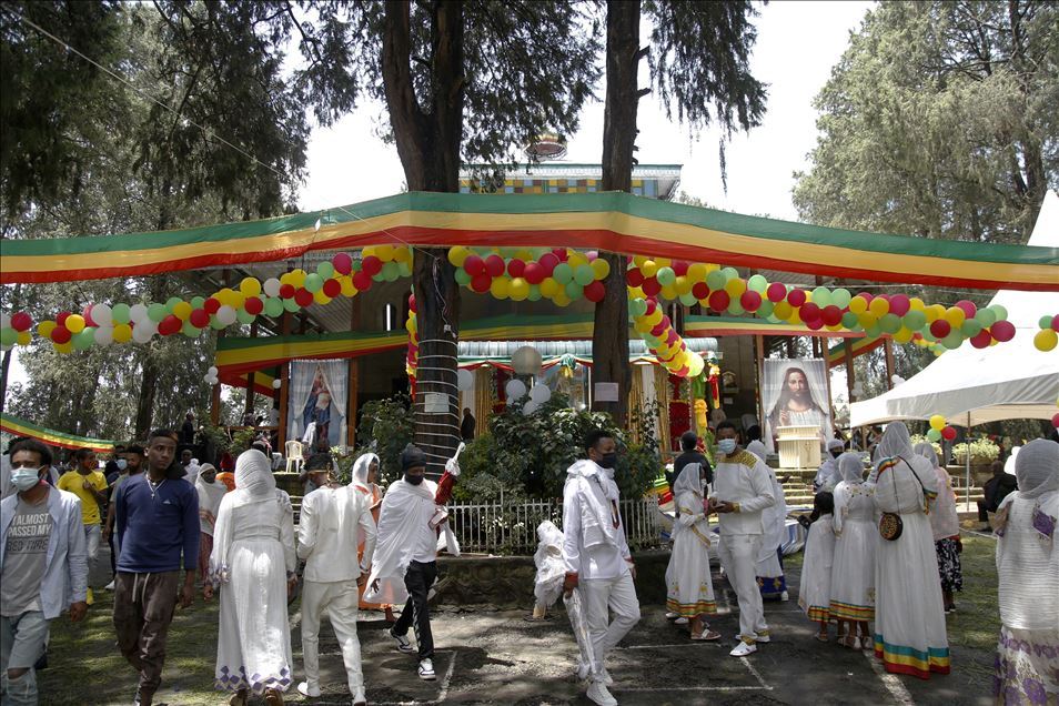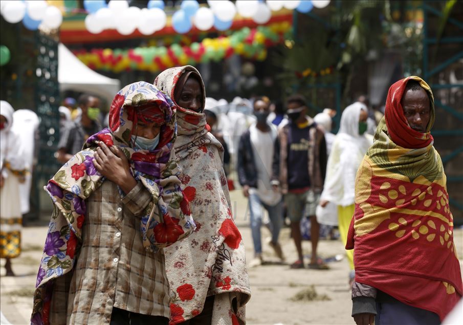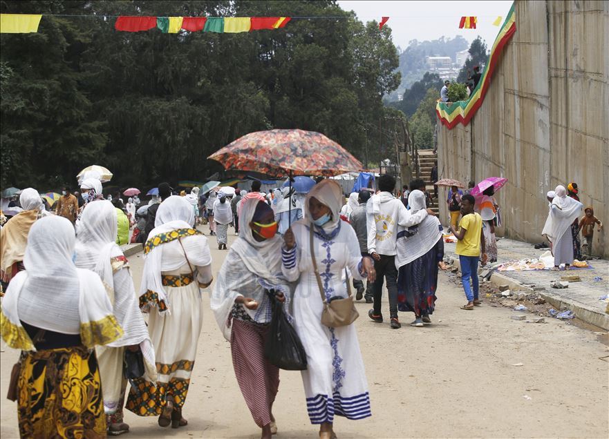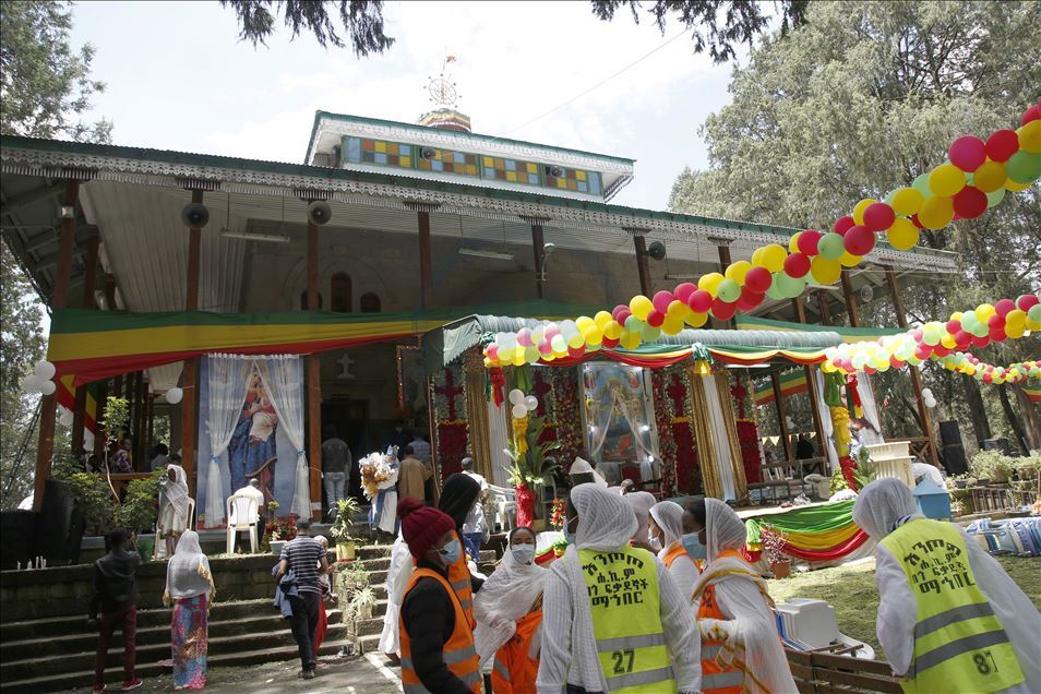 People visit Entoto Kidane Mehret Church as Ethiopian Orthodox Christians celebrate the Filseta Day after fasting for 15 days without consuming animal products, commemorating the Assumption of Mary in Addis Ababa, Ethiopia on August 22, 2020.