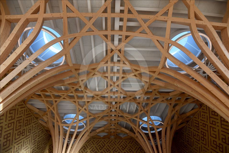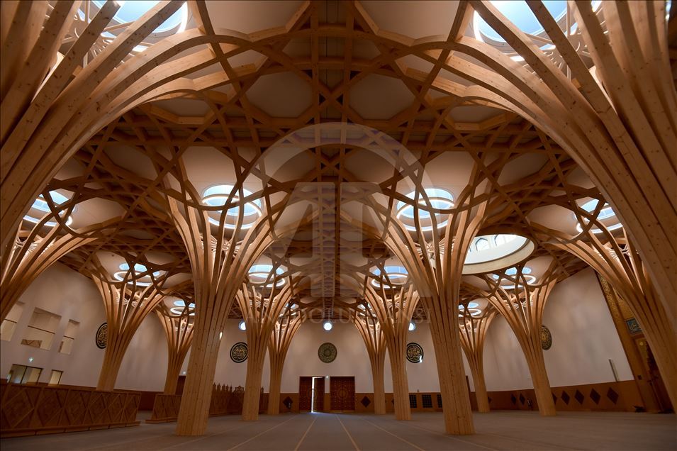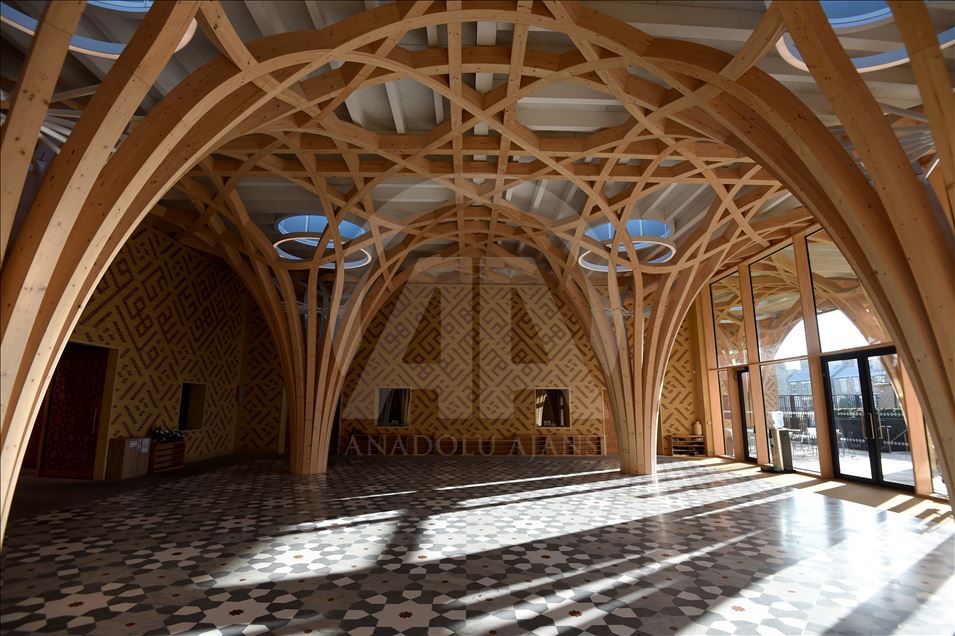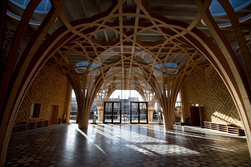 CAMBRIDGE, ENGLAND - NOVEMBER 30: An interior view of the new Cambridge Mosque is seen in Cambridge, England on November 30, 2019. In addition to its award-winning architecture, which adheres to Islamic traditions, the mosque attracts attention with its environmentally friendly systems that store rainwater and the building provides some of its electricity from solar energy. The mosque, which uses natural materials such as wood and marble, also attracts attention with having zero carbon footprint.