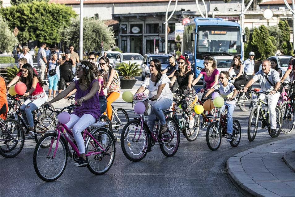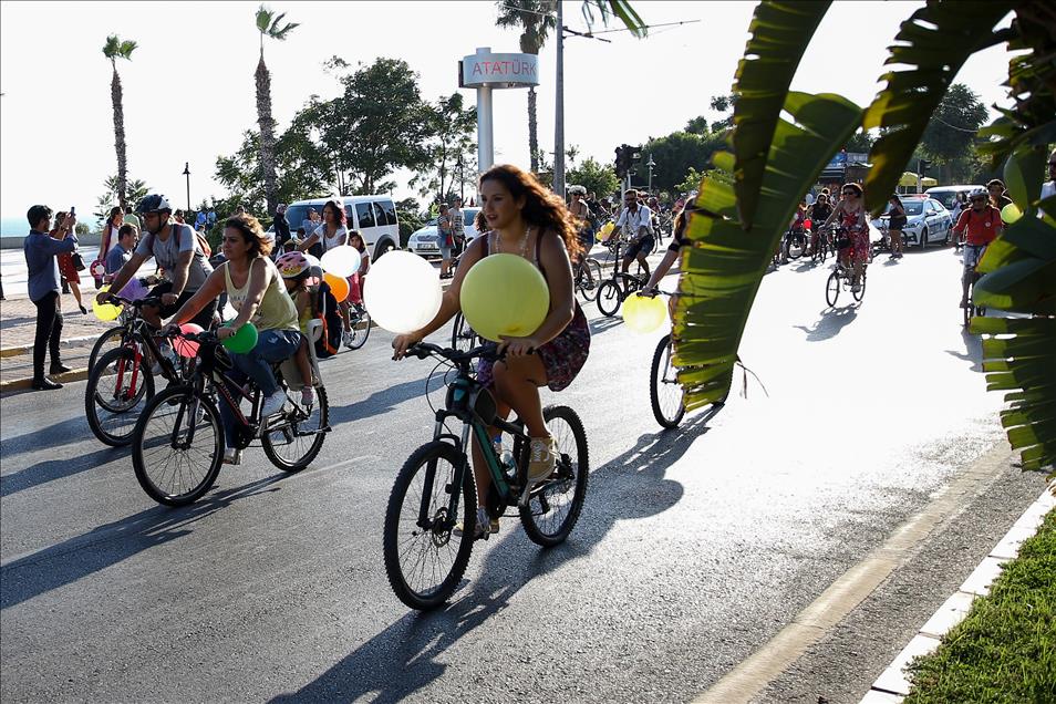 ANTALYA, TURKEY - SEPTEMBER 23 : Turkish women ride their bikes as they take part in "Fancy Women Bike Ride" within the EU's “Mobility Week" in Antalya, Turkey on September 23, 2018. ( Orhan Çiçek - Anadolu Agency )Orhan Çiçek