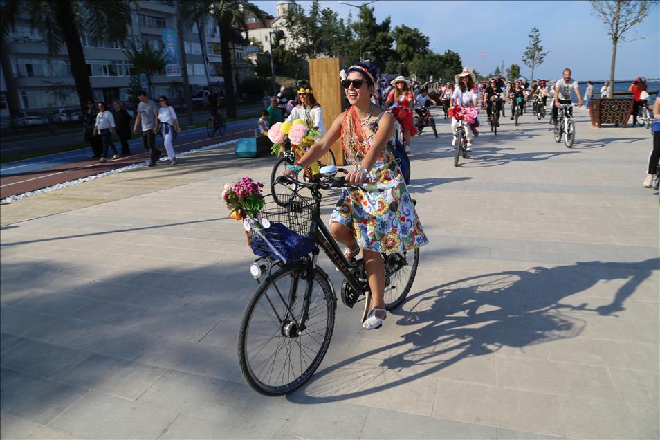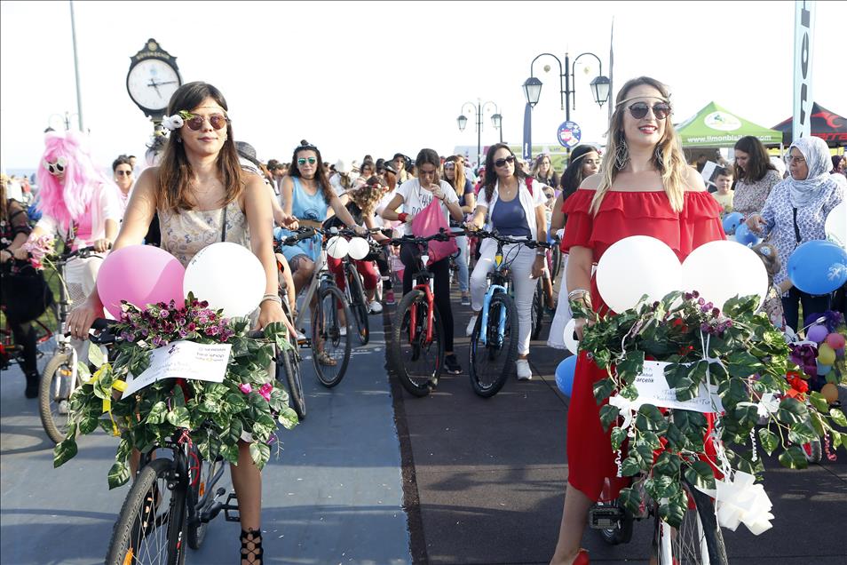 TEKIRDAG, TURKEY - SEPTEMBER 23 : Turkish women ride their bikes as they take part in "Fancy Women Bike Ride" within the EU's “Mobility Week" in Tekirdag, Turkey on September 23, 2018. ( Ömer Ural - Anadolu Agency )Ömer Ural