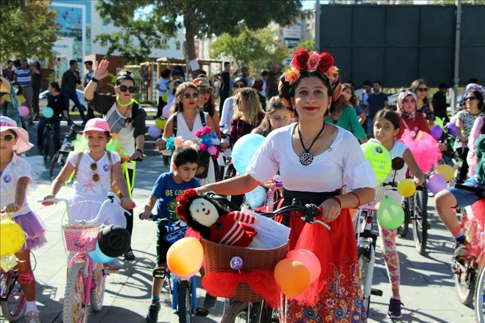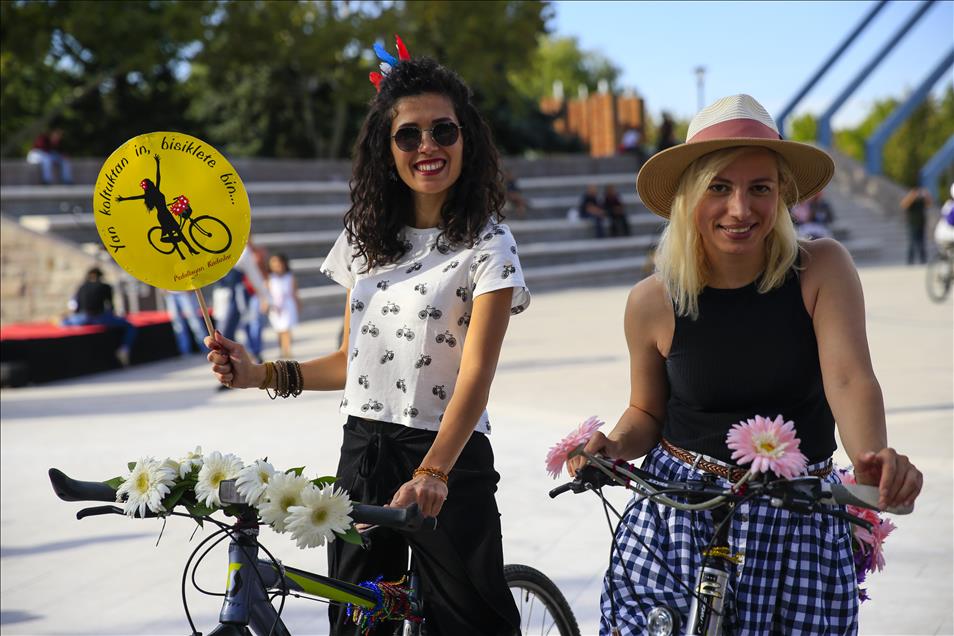ANKARA, TURKEY - SEPTEMBER 23 : People ride their bikes as they take part in "Fancy Women Bike Ride" within the EU's “Mobility Week" in Ankara, Turkey on September 23, 2018. ( Doğukan Keskinkılıç - Anadolu Agency )Doğukan Keskinkılıç