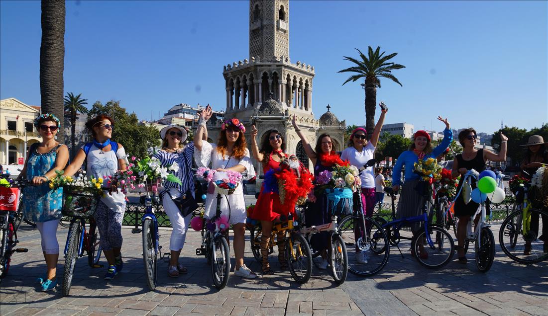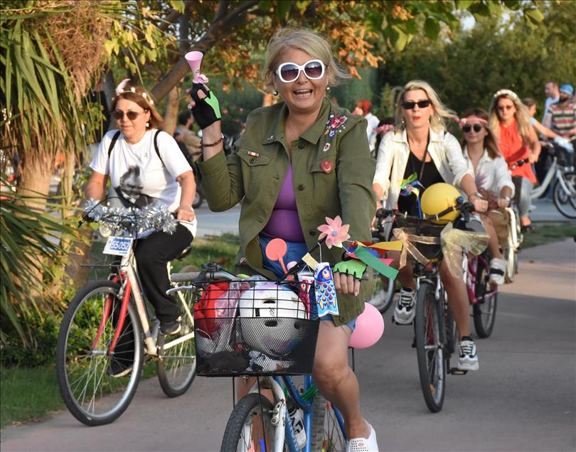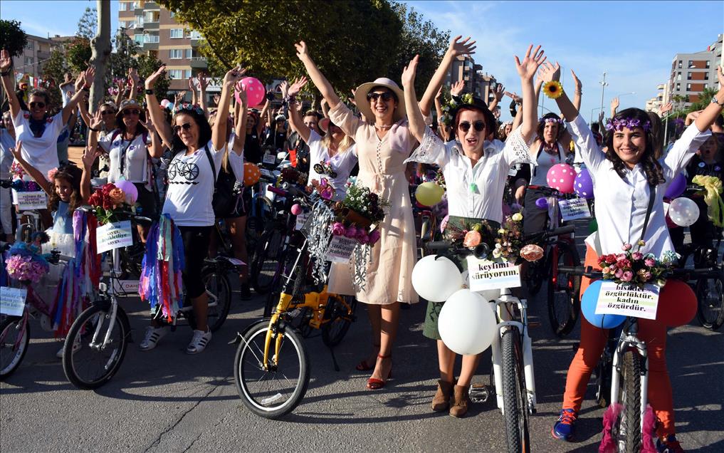 IZMIR, TURKEY - SEPTEMBER 23 : Turkish women ride their bikes as they take part in "Fancy Women Bike Ride" within the EU's “Mobility Week" in Izmir, Turkey on September 23, 2018. ( Tezcan Ekizler - Anadolu Agency )Tezcan Ekizler