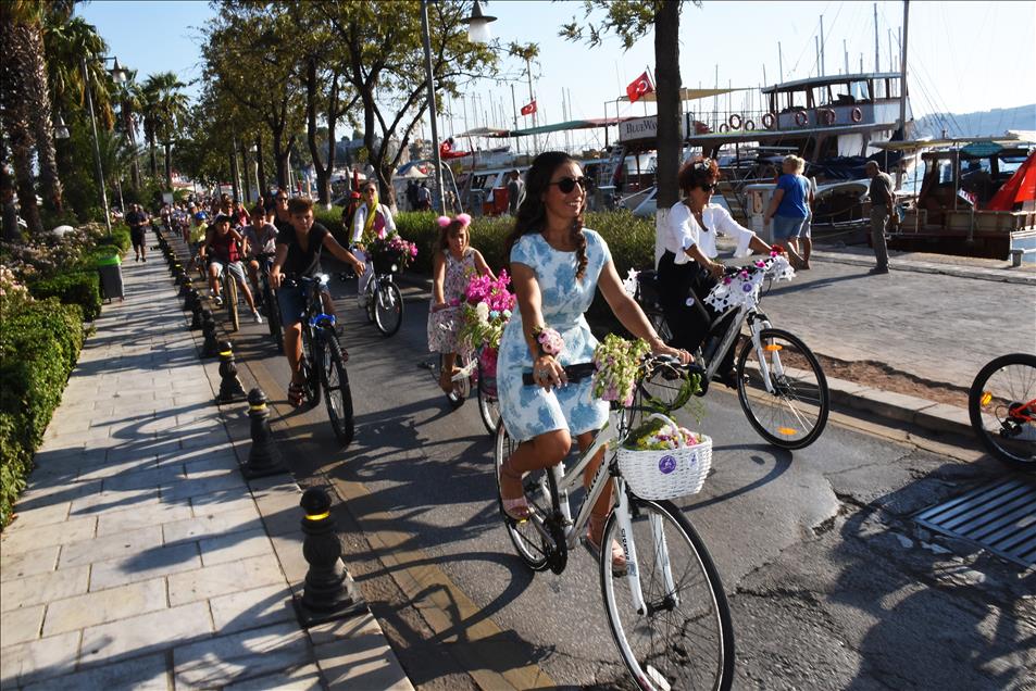 MUGLA, TURKEY - SEPTEMBER 23 : Turkish women ride their bikes as they take part in "Fancy Women Bike Ride" within the EU's “Mobility Week" in Mugla's Bodrum district, Turkey on September 23, 2018. ( Osman URAS - Anadolu Agency )Osman URAS
