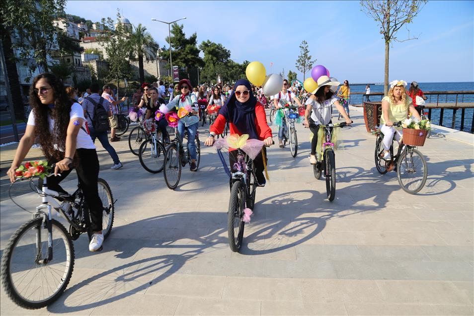 ORDU, TURKEY - SEPTEMBER 23 : Turkish women ride their bikes as they take part in "Fancy Women Bike Ride" within the EU's “Mobility Week" in Ordu, Turkey on September 23, 2018. ( Hayati Akçay - Anadolu Agency )Hayati Akçay
